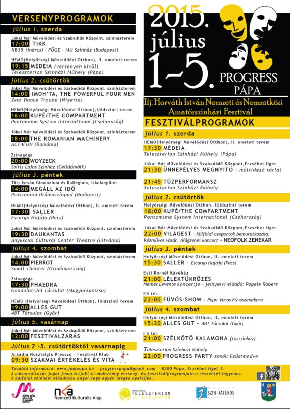 Komáromi Sándor, a program másik főszervezője is a jó értelemben vett populáris jellemzőjét emelte ki a szerdán kezdődő fesztiválnak, melyen amatőr színjátszó csoportok mutatkozhatnak be. A közönség mellett szakavatott zsűri is megtekinti, bírálja a produkciókat. -Pataki András, a soproni Petőfi Színház igazgatója, Regős János, a Magyar Szín-Játékos Szövetség elnöke, valamint egy cseh rendező bírálja majd a színjátszó csoportokat. A szakmai programokon túl a színjátszó képzésben részt vevő tanulók a csoportkísérésben és egyéb kisegítő munkákban is közreműködnek az öt nap során, a diákok jelenléte pedig tovább erősíti a pápai élet és az amatőr színházi szféra közti kapcsolatot – mondta Komáromi Sándor.