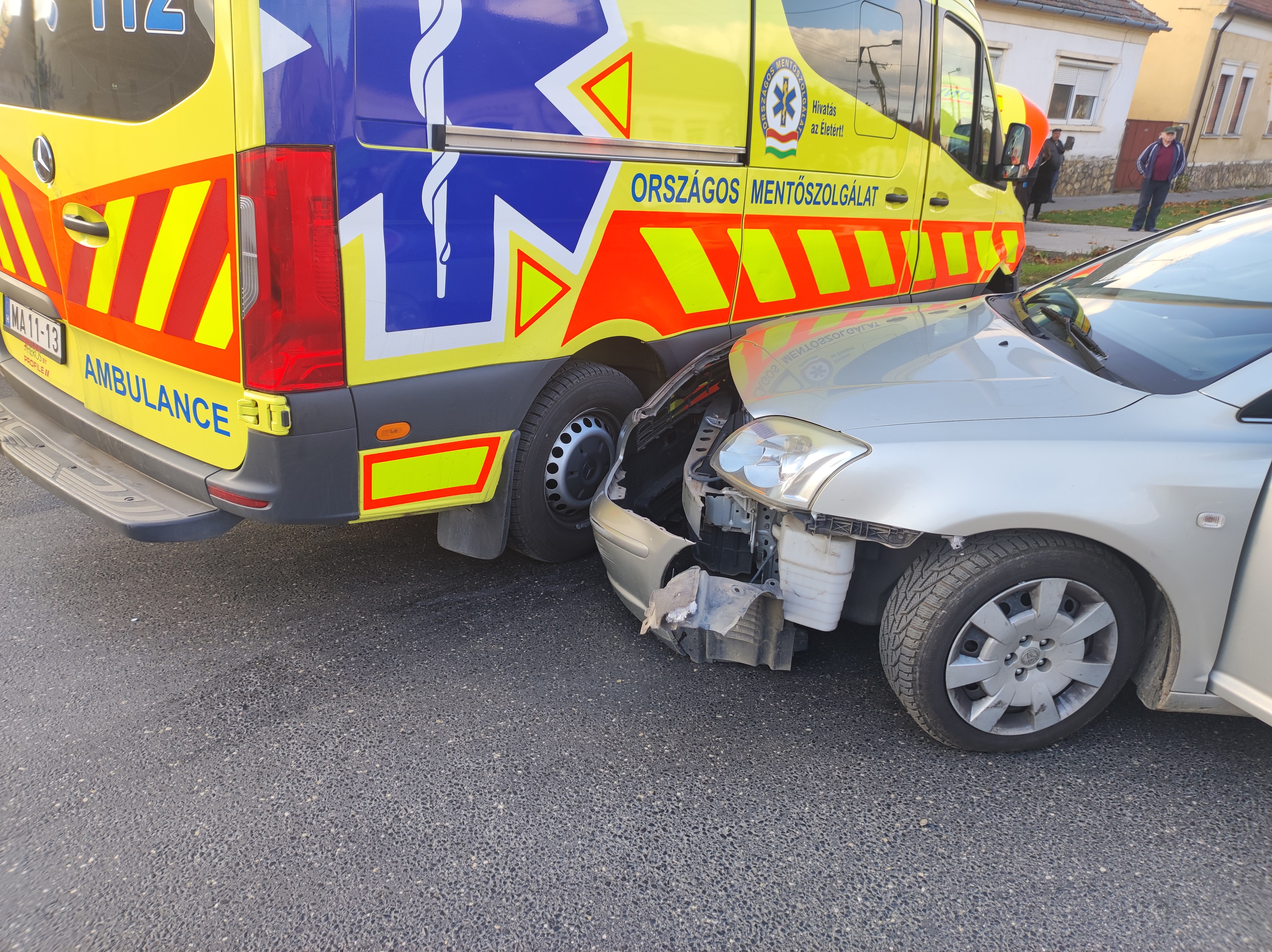 Megkülönböztető jelzést használó mentőautó és személyautó ütközött össze nem sokkal ezelőtt az Acsádi, Török Bálint és a Vásár utcák csomópontjában lévő körforgalomban.