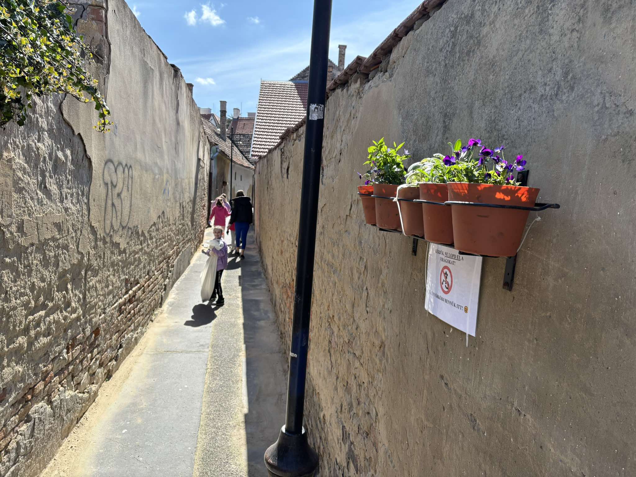 Tavaly tavasszal szerveztek a civilek figyelemfelhívó akciót az akkor bűzlőn és szemetesen is hangulatos belvárosi kis utcácskákban, amely nagy sikert aratott. S, hogy mennyire, mi sem bizonyítja jobban, hogy ezúttal sokkal kevesebb dolga volt az önkénteseknek. A Közszolg rendszeres takarításának köszönhetően némi seprésre és gazolásra volt csupán szükség, illetve a tavaszi színes virágok kiültetésére, a tavaly felszerelt virágtartókba.