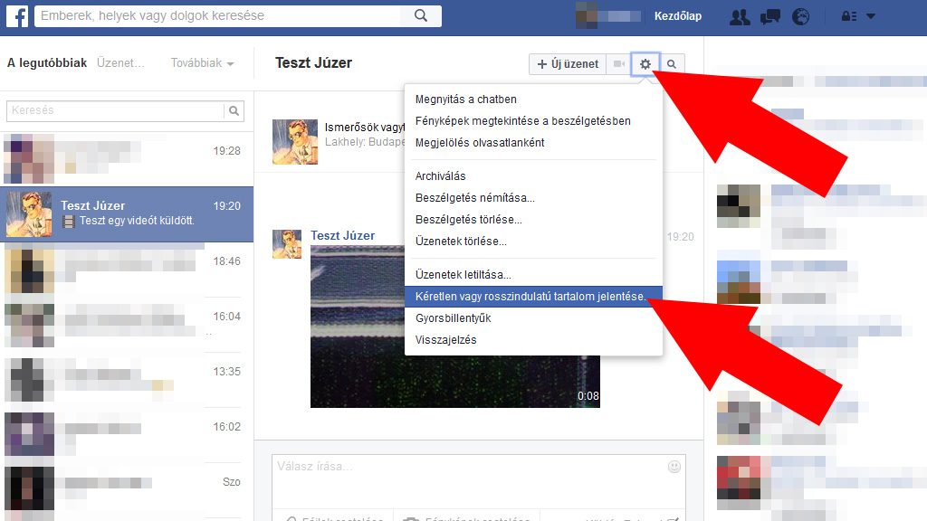 Amikor megérkezik a videó, ne mobilon nyissuk meg, itt ugyanis nem lesz lehetőség jelenteni a kéretlen, vagy trükkös próbálkozásokat. Irány a böngésző, de itt se a felső állapotjelző csíkról kattintsuk le az üzenetet, bármennyire is csábító. Megtehetjük persze, de ilyenkor a kis ablakban megjelenő chat szintén nem teszi lehetővé, hogy felvegyük a küzdelmet a vírus ellen. Persze nyugalom, az üzenet megnyitása önmagában még nem káros, csak a videót ne indítsuk el semmi pénzért.