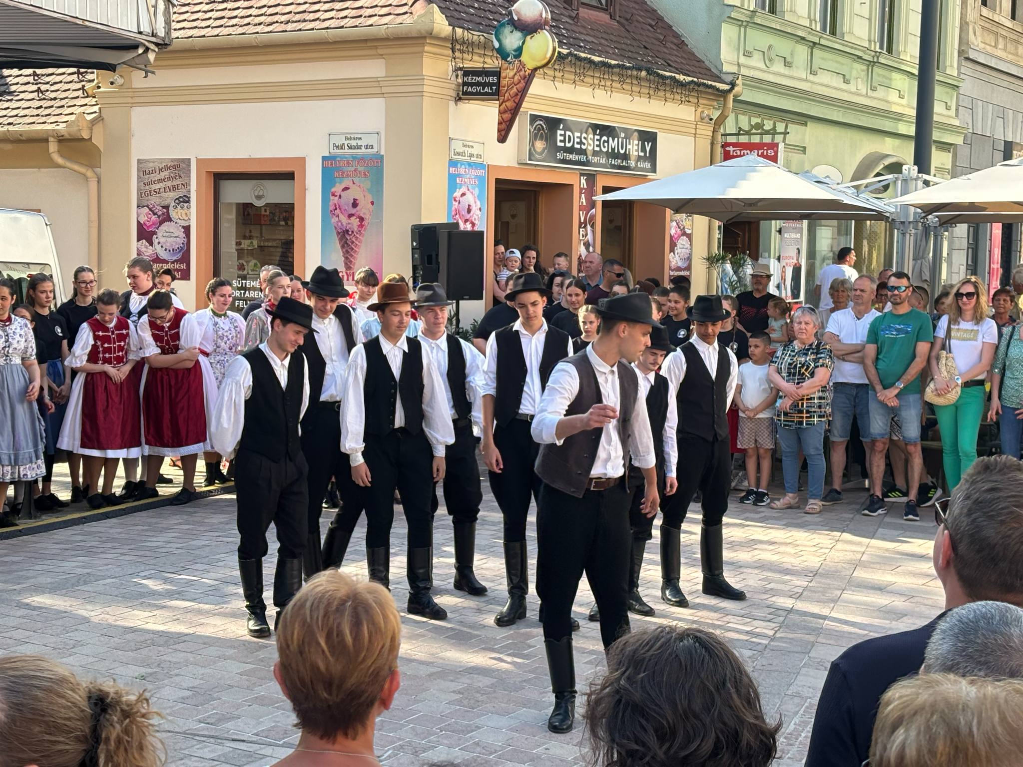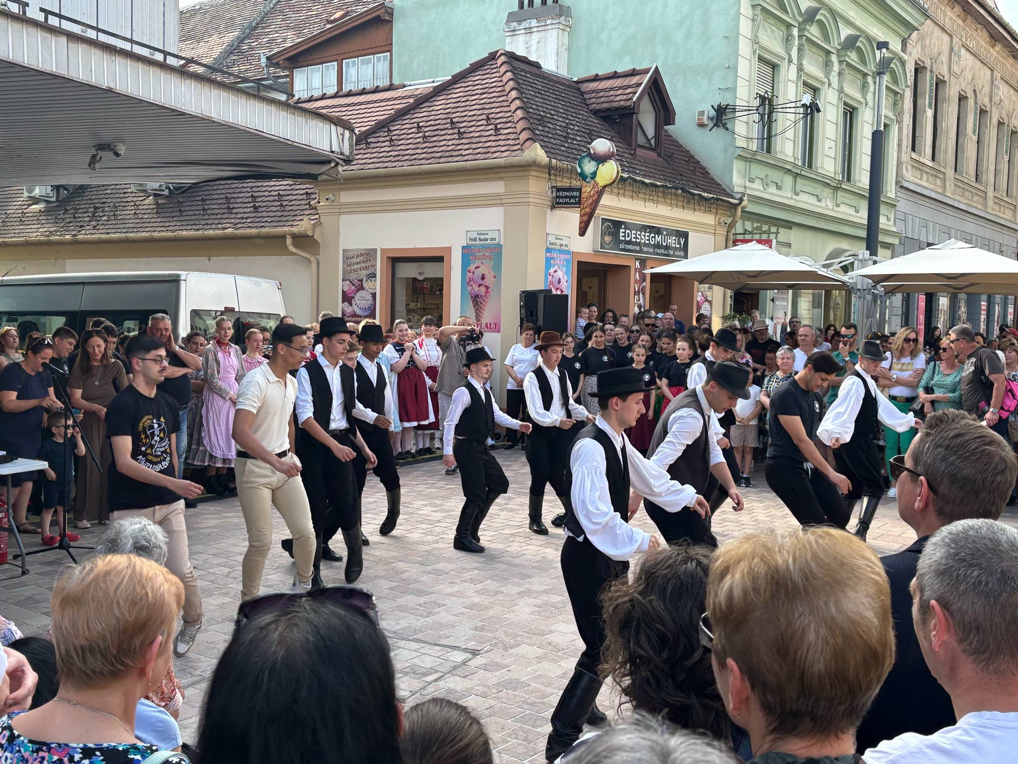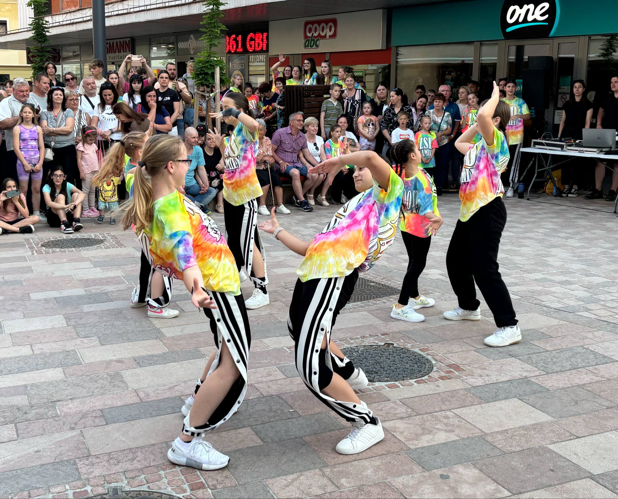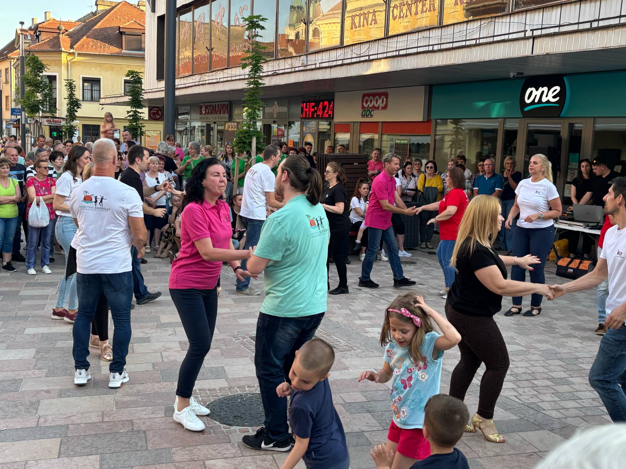 A napos, nyárias időben teljesen megtelt a Kossuth utca, a Belvárosi Forgatag soron következő rendezvényén, amely a Tánc Világnapja alkalmából, a Vadvirág Művészeti Egyesület szervezésében jött létre.