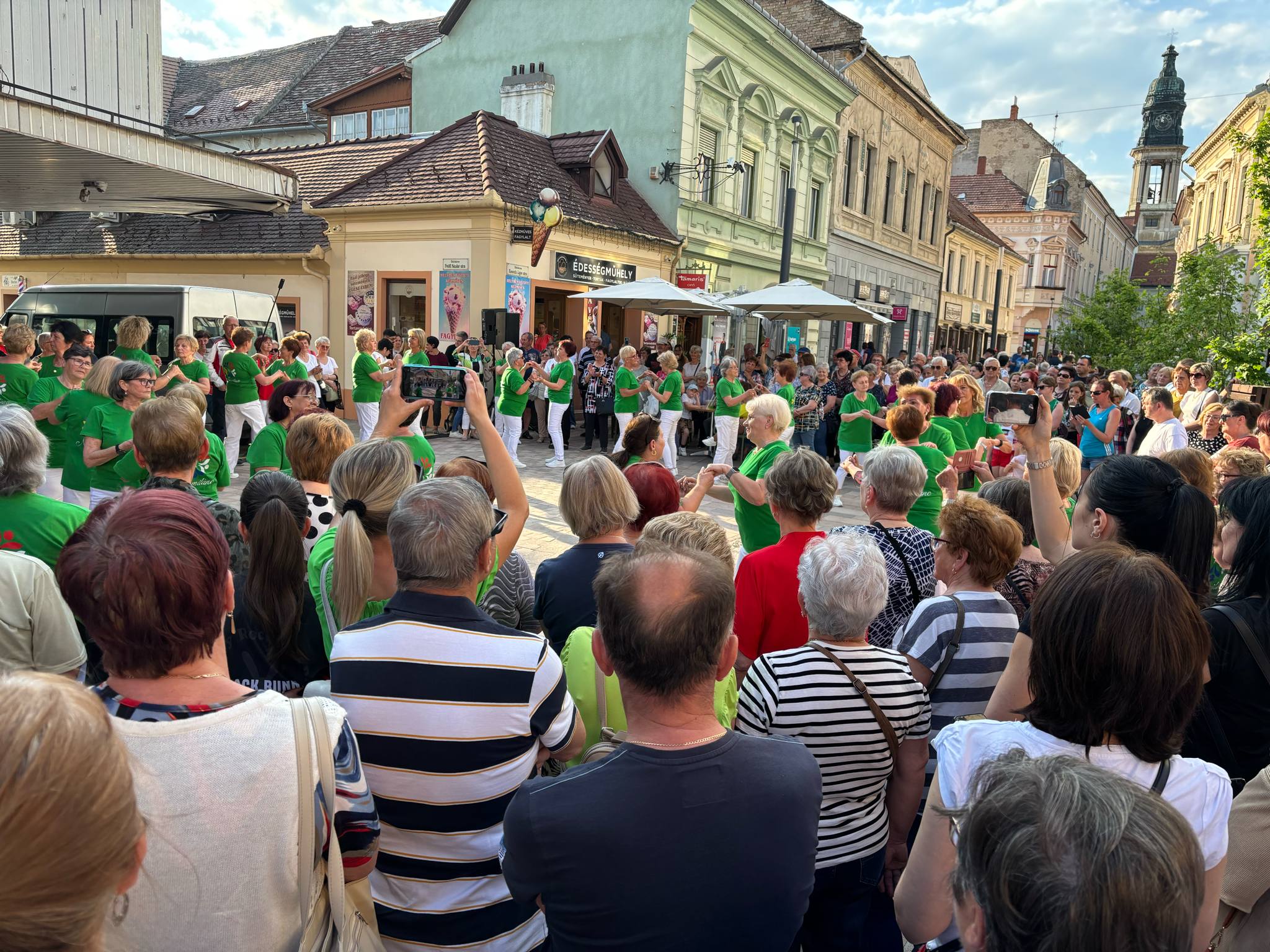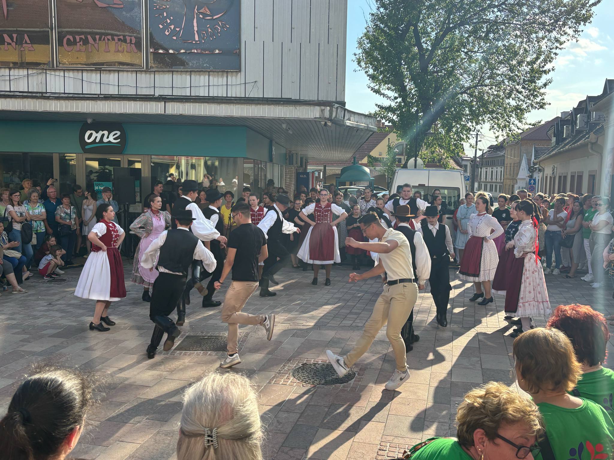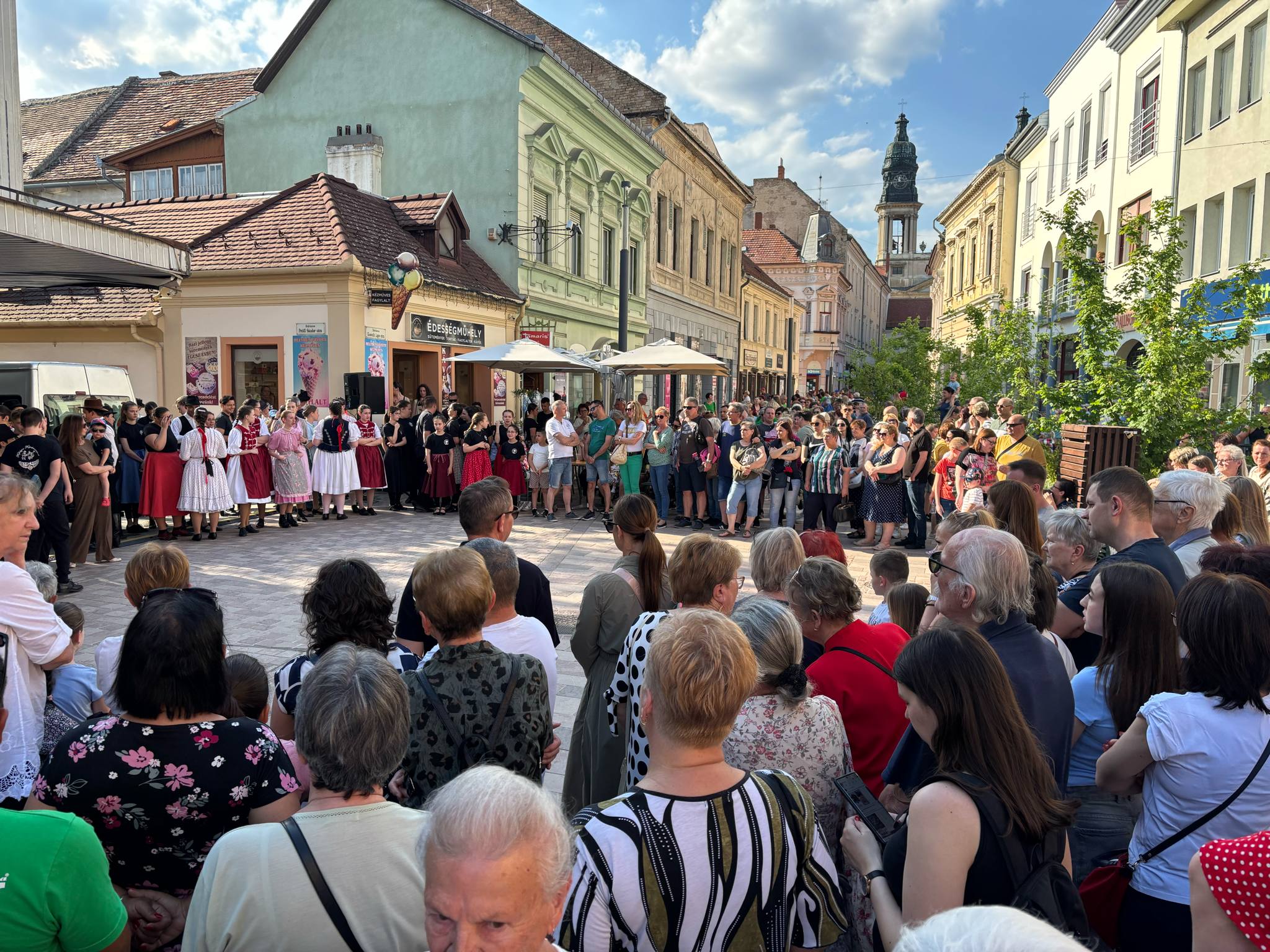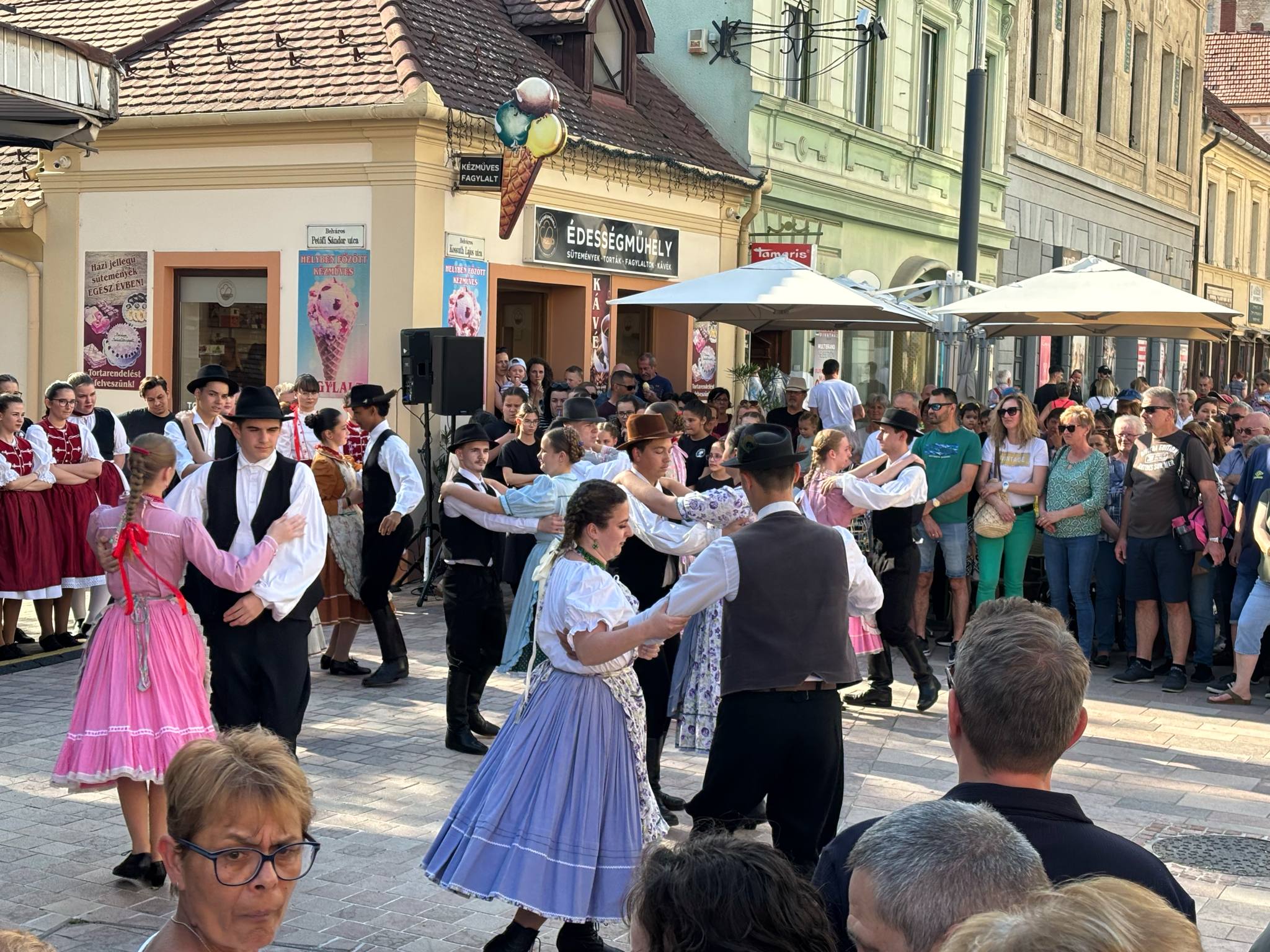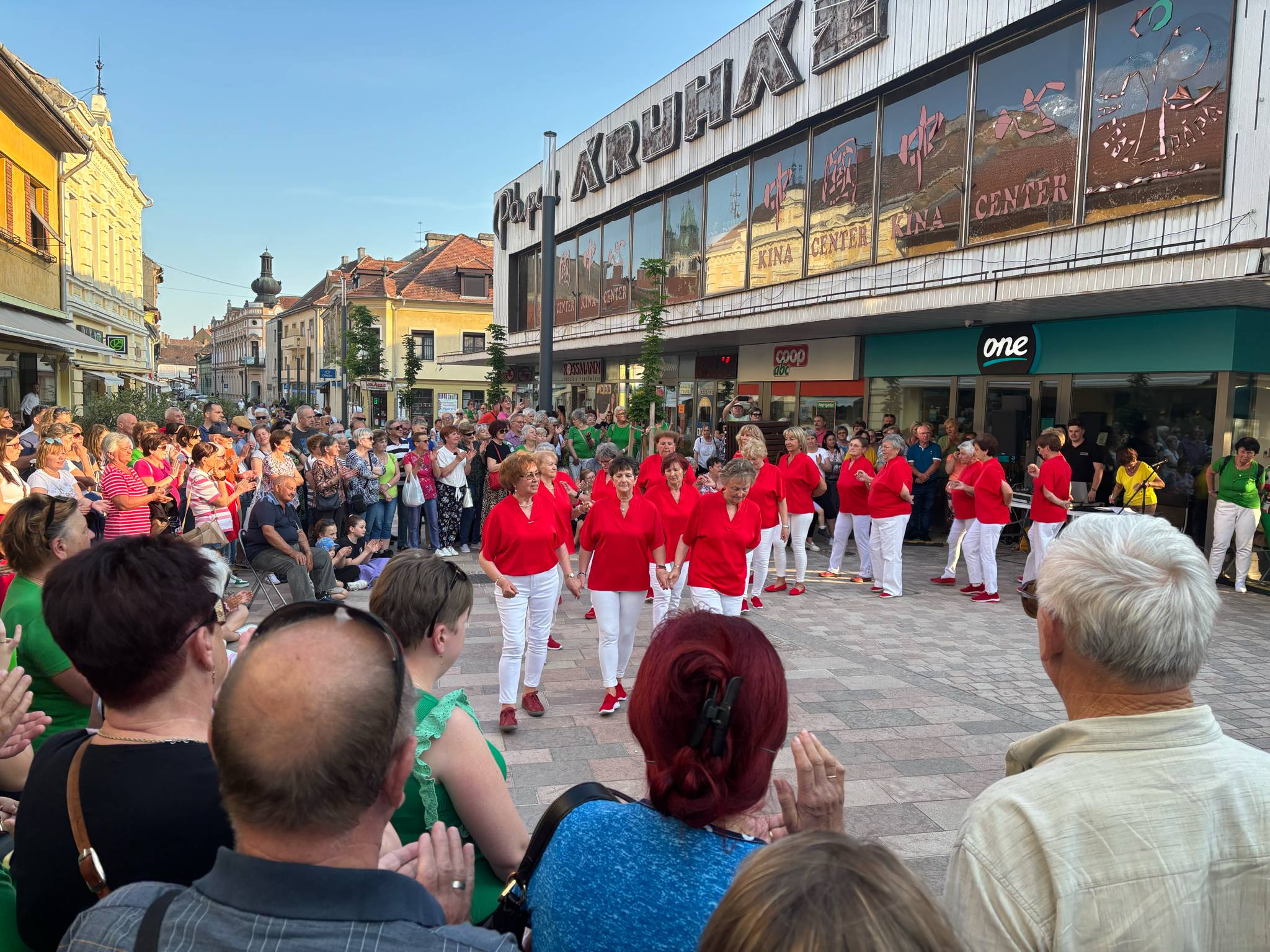 A napos, nyárias időben teljesen megtelt a Kossuth utca, a Belvárosi Forgatag soron következő rendezvényén, amely a Tánc Világnapja alkalmából, a Vadvirág Művészeti Egyesület szervezésében jött létre.