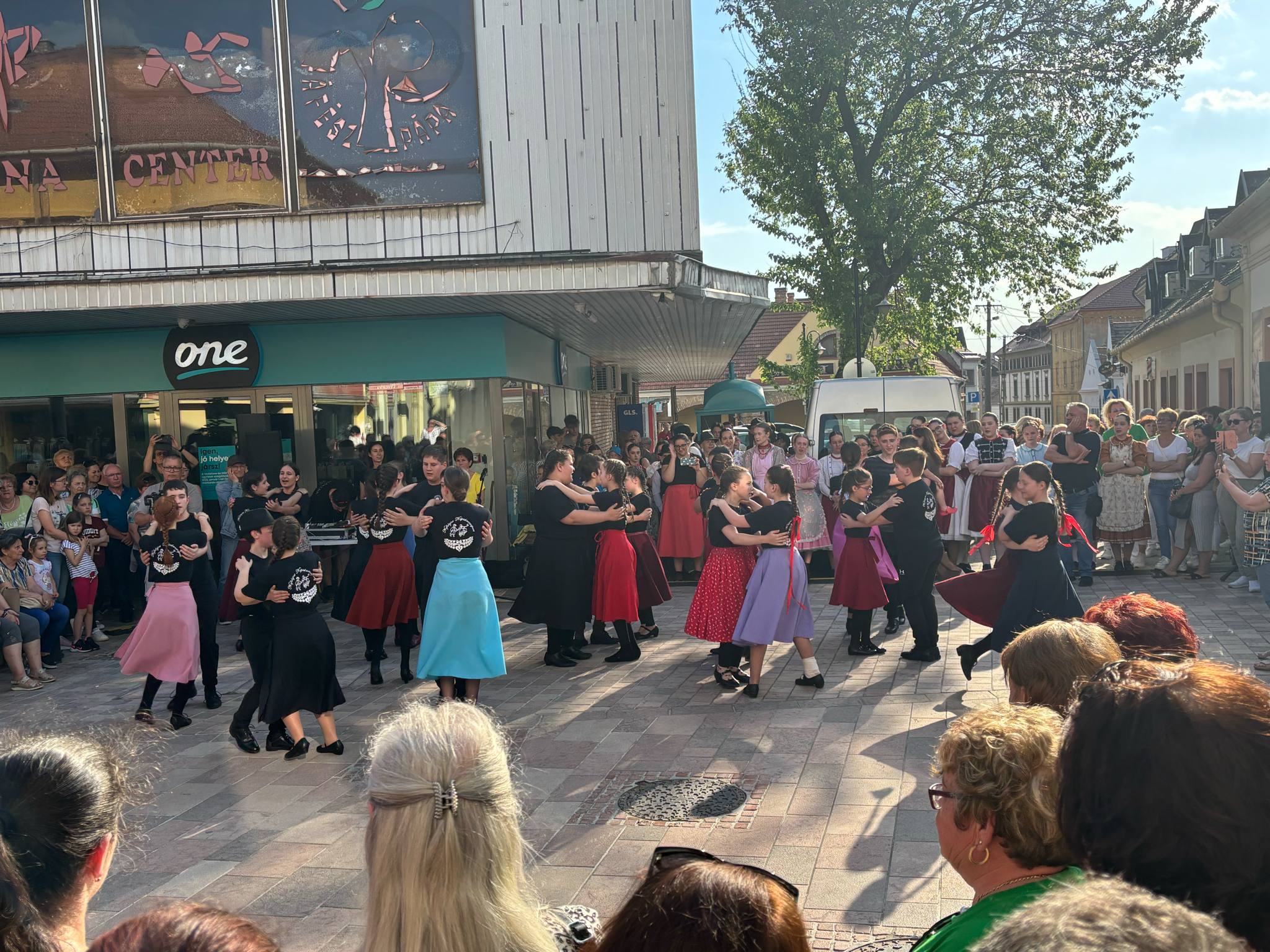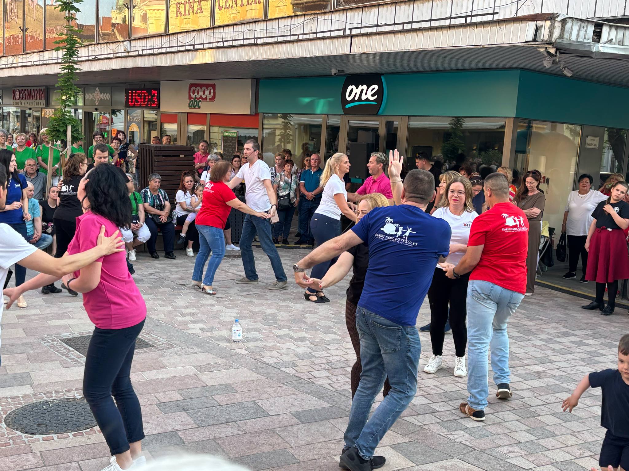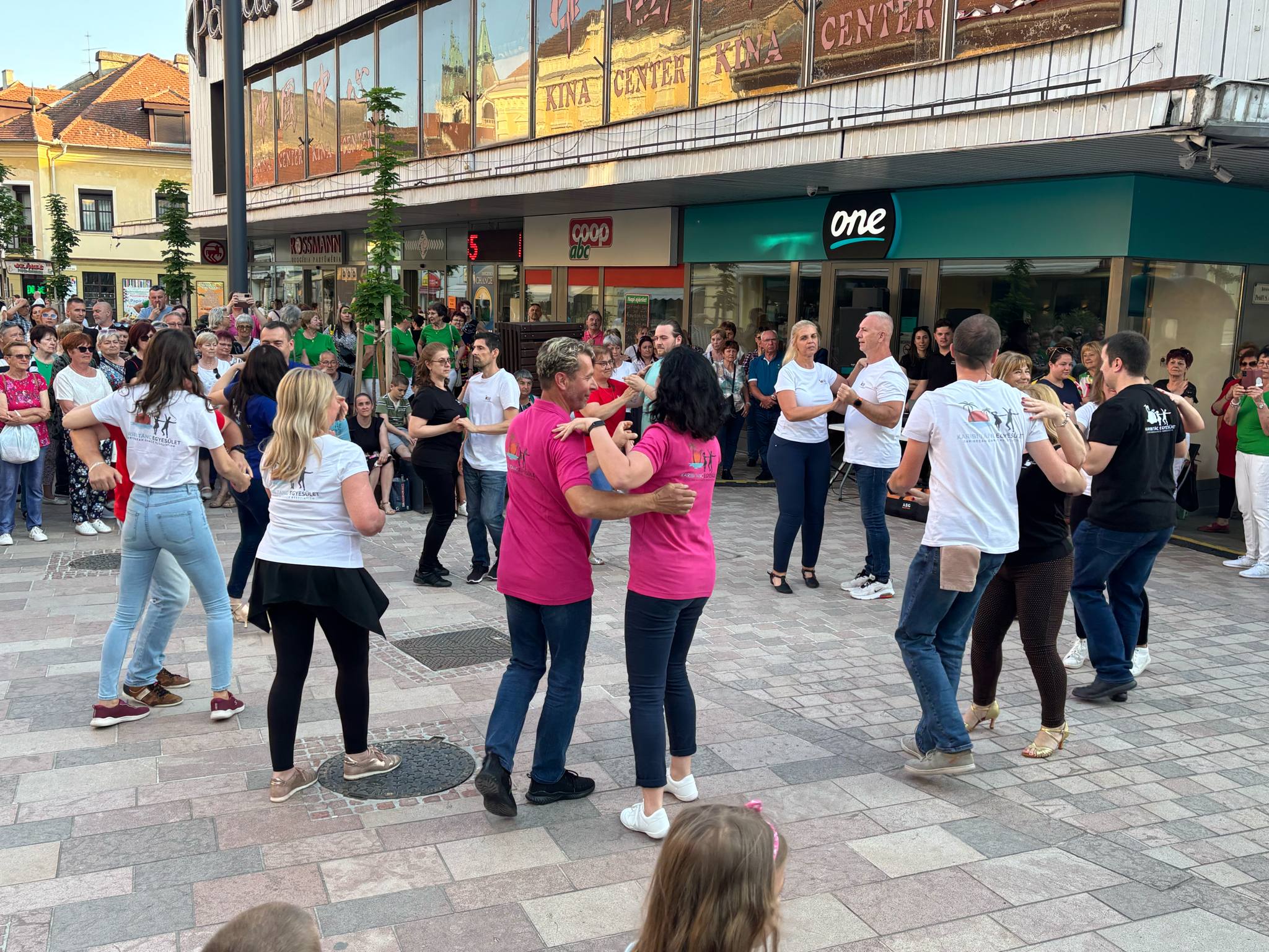 Az áruház előtti téren felléptek a Pápai Református Kollégium Tánc-Lánc A.M.I. néptánccsoportjai, a Pápai Vadvirág Néptáncegyüttes, a Noémi-Tánc és a Tiboróza senior örömtánc csoportok, a Sasla Cubana Autentica és a Karibi Tánc Egyesület salsa táncosai, valamint a Zsoodance Tánc Sport Egyesület fiataljai.