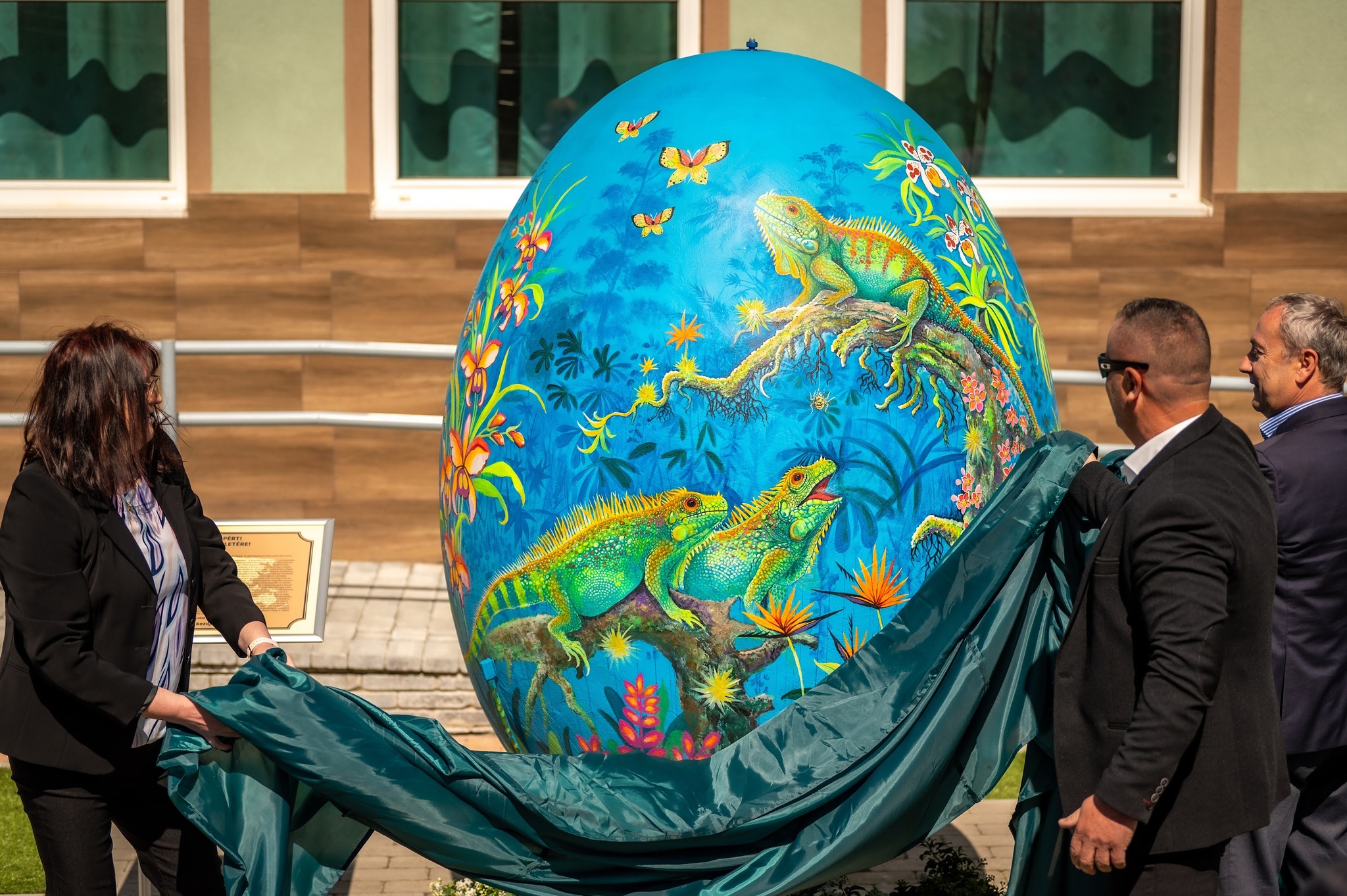 A Herendi Porcelánmanufaktúrában mesterfestőként és tervezőként dolgozó Vida Sándor pápai művész készítette el a Föld Napján átadott dínótojást.