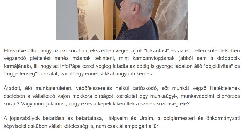A Fideszhez köthető Pápai Iránytű mégis páros lábbal szállt bele a kezdeményezésbe. Egy azóta törölt posztban azt írták, az egész csak egy kampányfogás, és egyébként is munkavédelmi előírásokat is megsérthetett az akció.