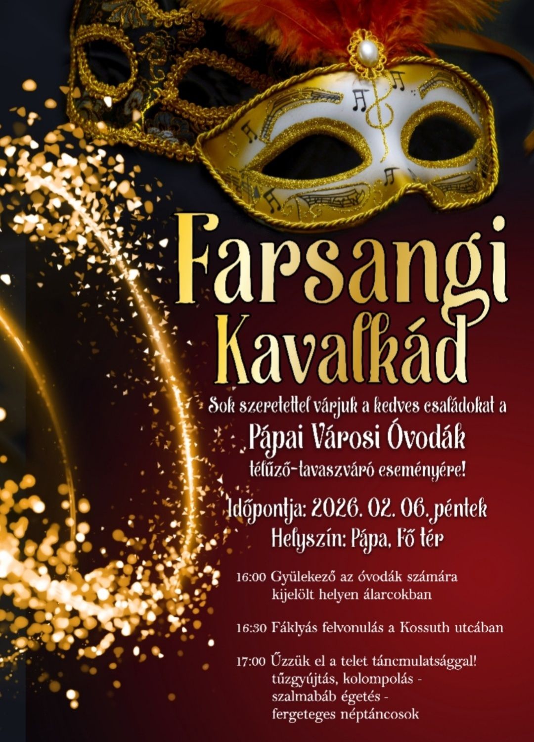 Február 6-án színes maszkokkal, fáklyás felvonulással és néptánccal űzik el a telet a Pápai Városi Óvodák közös farsangi eseményén. A jó hangulatról tűzgyújtás, kolompolás és a hagyományos szalmabáb-égetés gondoskodik a Fő téren – kicsiket és nagyokat egyaránt vár a télűző mulatság.