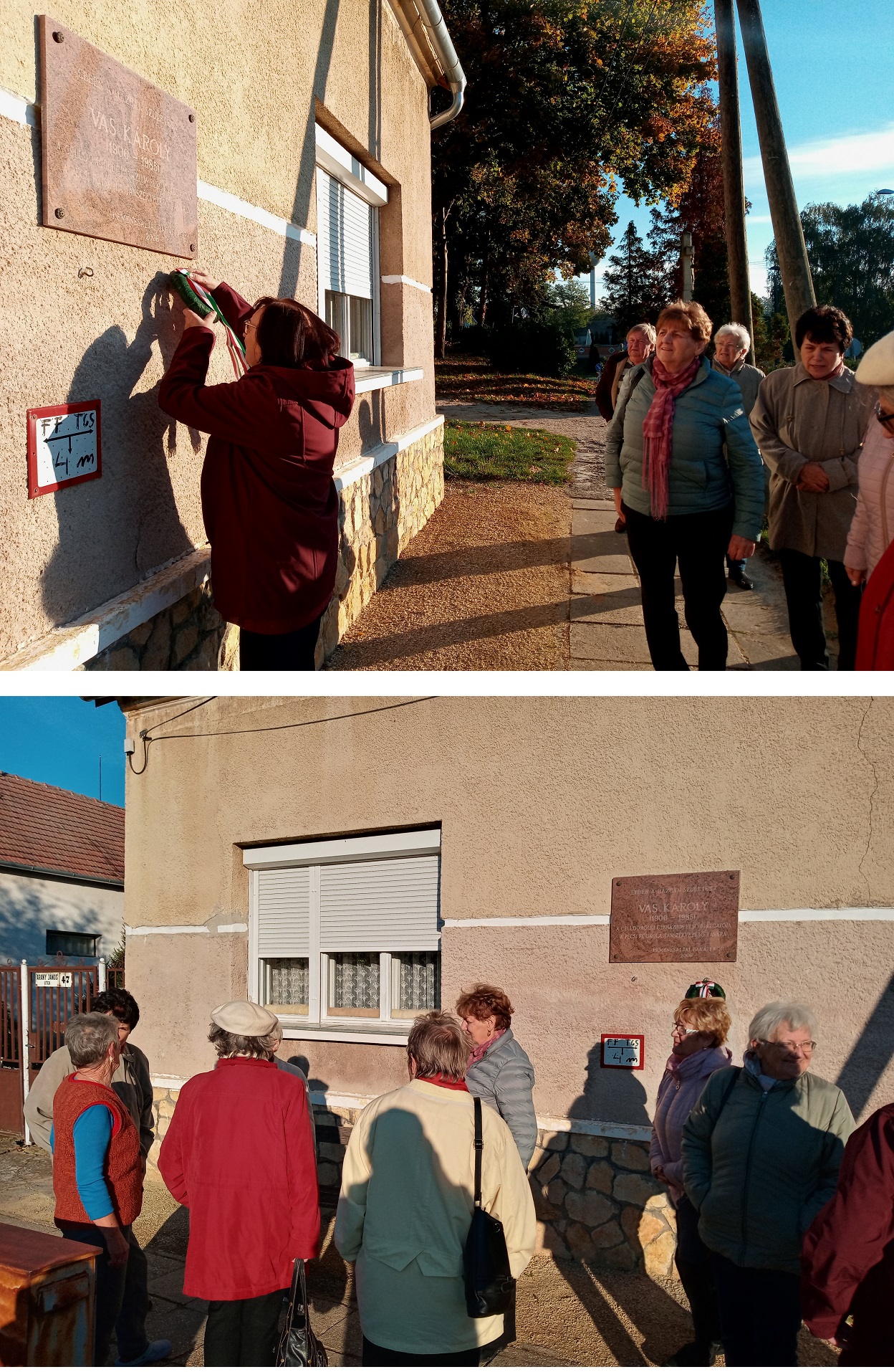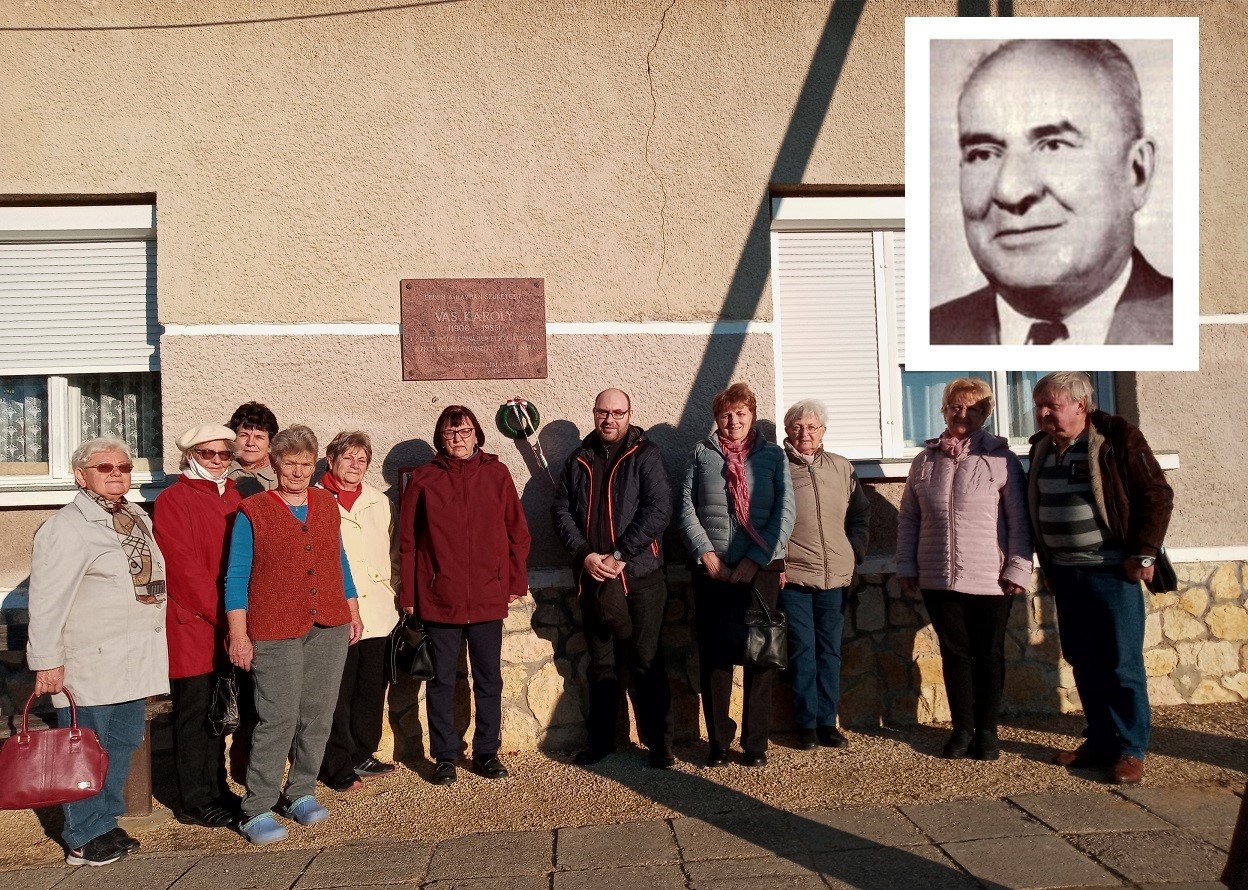 Kedves kis momentum volt, amikor Váminé Molnár Emma nyugalmazott könyvtárosnő, egyleti önkéntesünk felhelyezte a tábla alá koszorúnkat, ezt odabentről, a házból megpillantva özv. Vas Gézáné kifutott, s csatlakozott hozzánk, szerény főhajtásunkhoz. Megköszönve, hogy számon tartottuk az idei Vas-évfordulót. Vas Gézáné apósának a testvére volt Vas Károly.