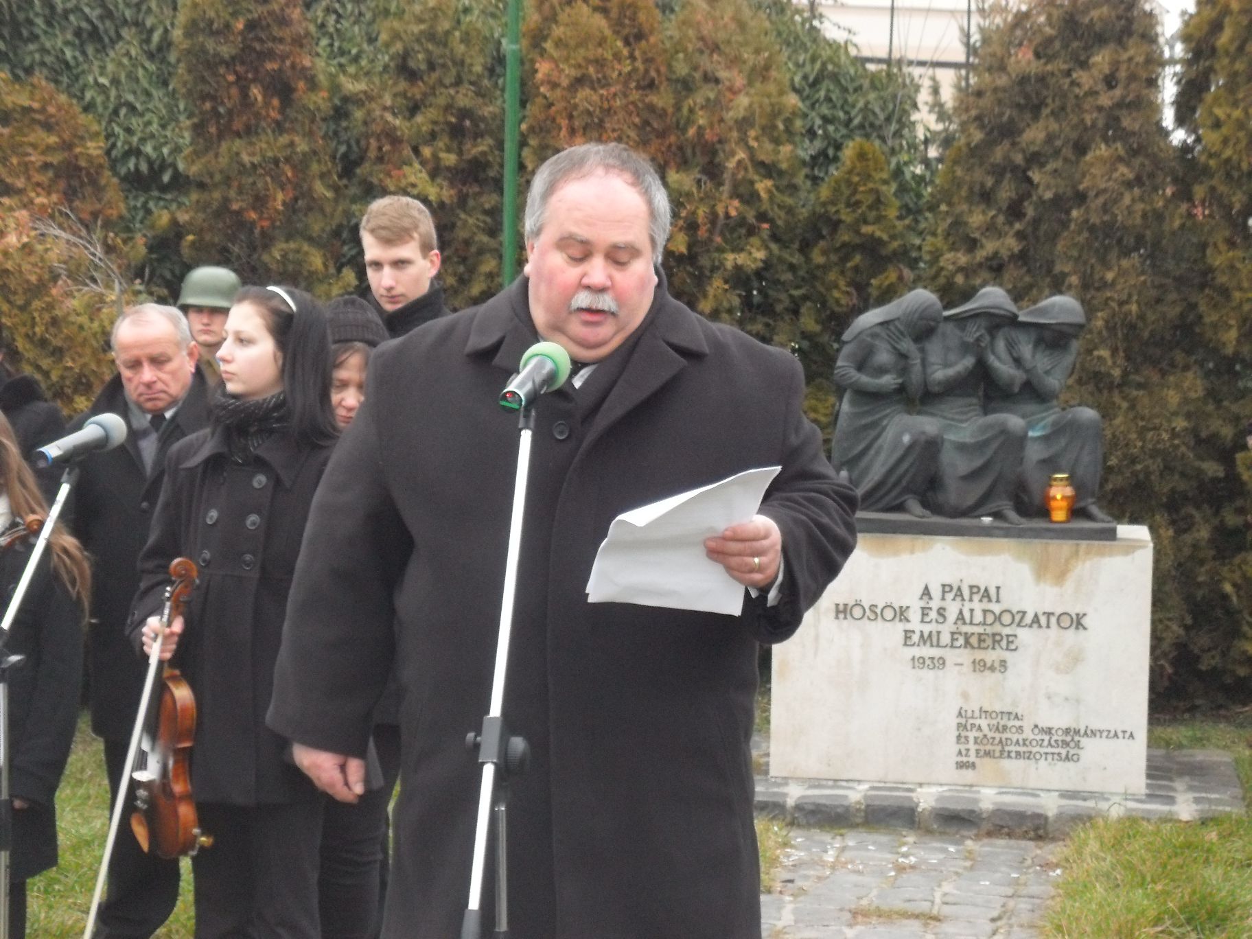 A Pápai Huszár Egyesület rövid zenés-verses műsorát követően Kékesi István, Csót polgármestere idézte fel a második világháború talán legtragikusabb magyar vonatkozású eseményét. 1943. január 12-14 között a Szovjet hadsereg áttörte a magyar arcvonalat a Don kanyarnál. A 200 ezres seregből 120 ezren soha nem tértek haza. A gyengén felszerelt 2. magyar hadsereg megfelelő ellátása sem volt megoldott, ráadásul a 30-40 fokos hideg is megtizedelte már harc nélkül is a honvédeket. A tragédiához az is nagyban hozzájárult, hogy a 200 ezer fős seregnek 200 km hosszan kellett volna helytállni, ami egy jól felszerelt alakulatnak is túl hosszú arcvonal lett volna. A szovjet hadsereg 1943. január 13-án indított hadműveletet. Január 17-ére a második magyar hadsereg már felbomlóban volt - idézte fel a történteket a polgármester.