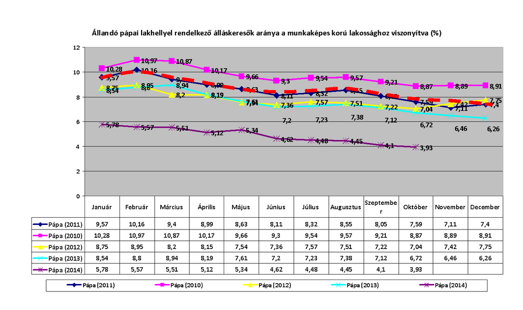 A sajtótájékoztatón kiderült, hogy az álláskeresők arányi is folyamatos csökkenést mutat a városban. - A 2010 februárjában mért csaknem 11%-os szintről mára 4% alá csökkent a mutató. A 3,93 százalékos rátát a közgazdaságtanban egyébként a teljes foglalkoztatáshoz közeli állapotnak szokták minősíteni. Ez az adat 860 álláskeresőt jelent, melyben a közfoglalkoztatásban résztvevők nem szerepelnek, számuk 200 körül mozog - mondta el Áldozó Tamás.