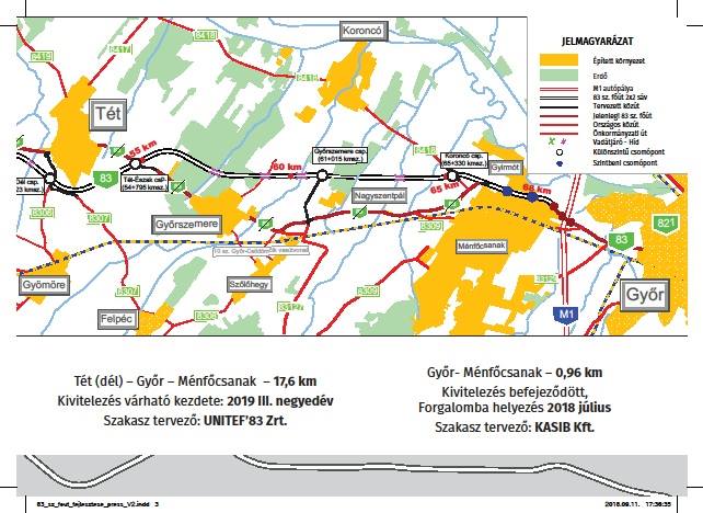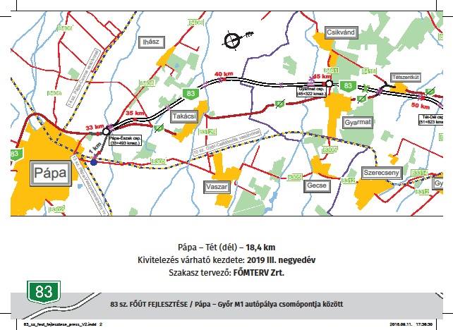 Időközi tájékoztató anyagot közölt a Nemzeti Infrastruktúra Fejlesztő Zrt., a 83 sz. főút Pápa – Győr M1 autópálya csomópont közötti fejlesztésével kapcsolatban.