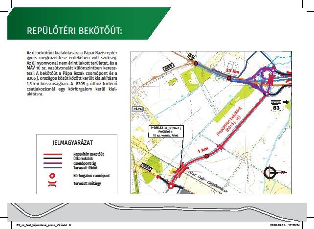 - Közvetlen kapcsolat a Bázisrepülőtér és a 83-as út között