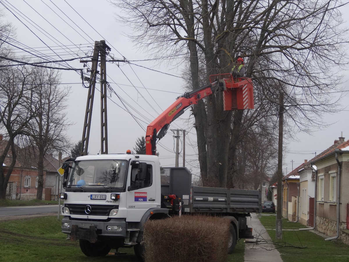 Bakó Istvántól, a társaság igazgatójától megtuduk, jelenleg olyan fák kivágásán, ágazásán dolgoznak, amelyek nincsenek túlságosan közel a vezetékekhez és nem szükséges a munkálatokhoz áramszünet. Március 27-én az áramszolgáltatóval egyeztetve áramszünet lesz a településen, ekkor nagy erőkkel, a tűzoltóság segítségével végzik a fák gallyazását, kivágását. A kivágott fákat kuglizzák, majd a Városgondnokság telephelyére szállítják, az ágakat pedig depózzák és később ledarálják.