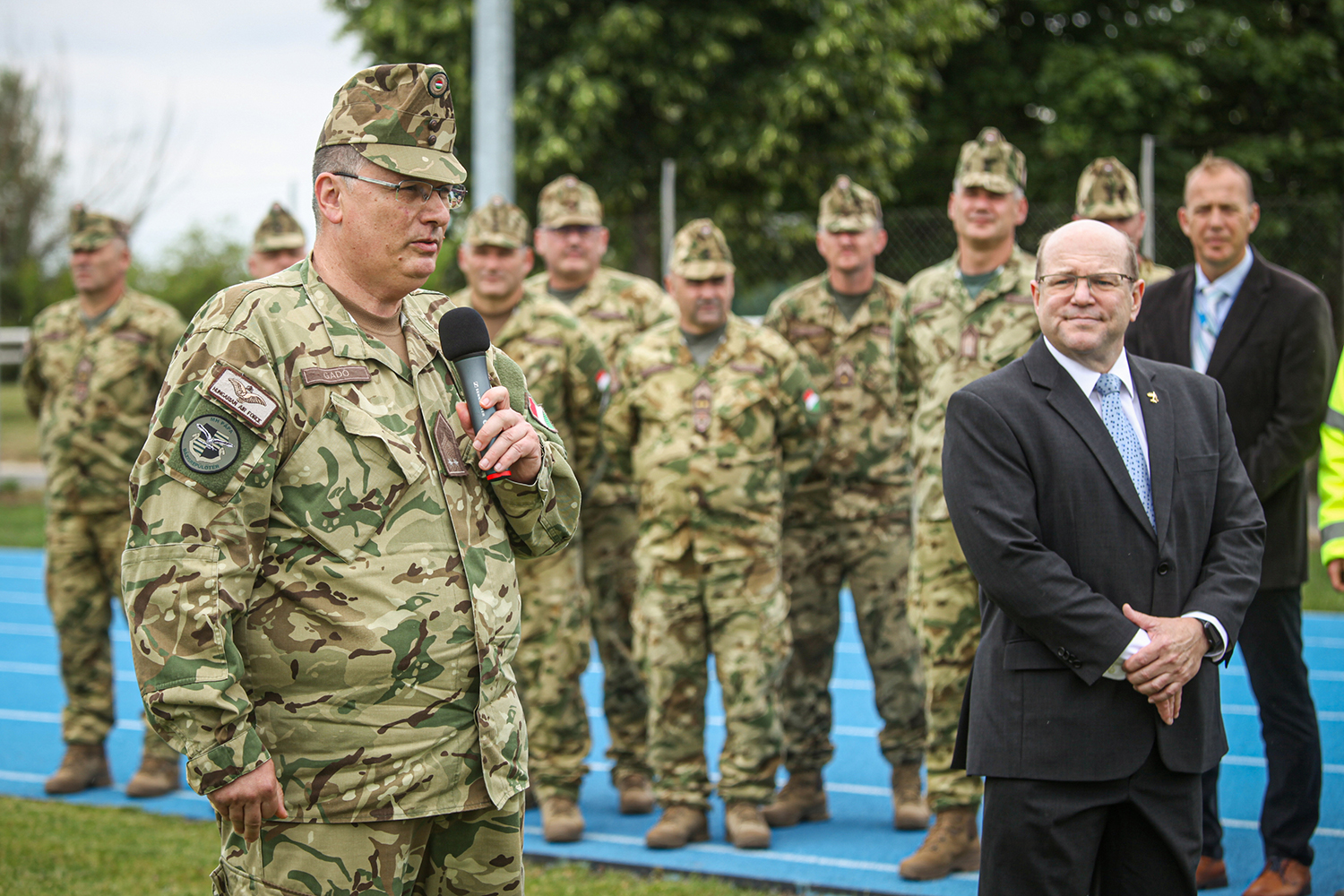 Gregory Clark, a projektet menedzselő helyi NATO Légiszállítást Kezelő Programiroda (NAMPO) programigazgatója adta át a megújult kültéri sportpályát és erdei futóösvényt, valamint az újonnan kialakított kerékpárbejáratot Gadó Imre alezredesnek, az MH Pápa Bázisrepülőtér parancsnokhelyettesének. „A bázisrepülőtéren települő szervezetek – azaz az MH PBRT, a Nehéz Légiszállító Ezred (HAW), a NAMPO és a Boeing – közös célja a folyamatos infrastrukturális fejlesztések megvalósítása és az itt szolgálatot teljesítő katonák és civilek munkakörülményeinek javítása, modernizálása. A sporttevékenység is nagyon fontos szerepet játszik mindennapi életünkben, hiszen mind mentálisan, mind fizikálisan fittnek kell maradnunk. Ez a csodálatosan felújított sportlétesítmény lehetőséget ad az MH Pápa Bázisrepülőtér, valamint a többnemzeti Stratégiai Légiszállítási Képesség (SAC) program dolgozói és családtagjai számára, hogy ideális körülmények között sportolhassanak” – mondta el Gadó alezredes.