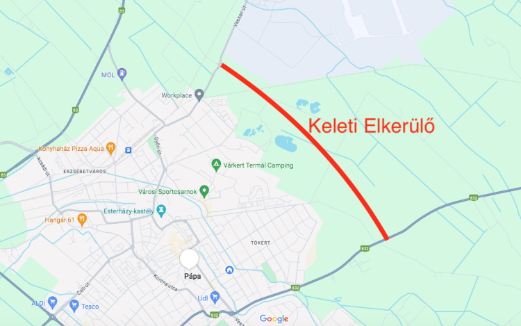 A forgalmat Pápa területéről elterelő úthálózatot, északról a bázisreptér bekötőútja felől induló elkerülő úttal bővítik. Kiindulópontja a már meglévő Vaszari úti körforgalom, tartalmaz egy-egy körforgalmat a Téglagyári út, a Gém utca, valamint a Gróf út bekötéseknél, továbbá a Gyimóti úti végpontjában.