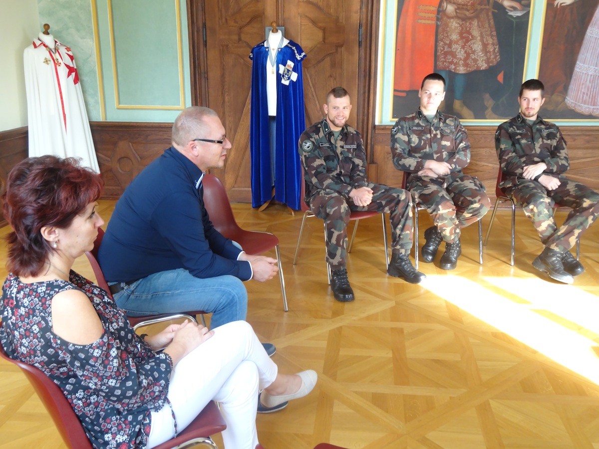Az augusztus 20-án felavatott tisztek és altisztek első tiszti beosztásukban, a pápai Bázisrepülőtéren álltak szolgálatba. A katonai bázis célja, hogy a katonák mind a munkájukban, mint pedig a magánéletben megtalálják számításaikat a városban, utóbbit segítheti ez a jelképes gesztus is. A néhány hete Pápán dolgozó tiszteket Áldozó Tamás fogadta az Esterházy-kastélyban, majd pedig városnézés következett. A Gangler László ezredes, a Bázisrepülőtér parancsnoka által kezdeményezett alkalmon a polgármester egy kötetlen beszélgetés keretén belül beszélt a katonáknak a város múltjáról, jelenéről és a jövőbeni tervekről. - Örülök annak, hogy személyesen kapcsolatba kerültünk és azt remélem, hogy ez a mai beszélgetés egy hosszútávú személyes kapcsolatot indít el és sokszor lesz még alkalmunk a városról beszélgetni - mondta a városvezető hozzátéve, kíváncsi volt arra is, hogy az ország különböző pontjairól érkező tisztek miként látják Pápát.