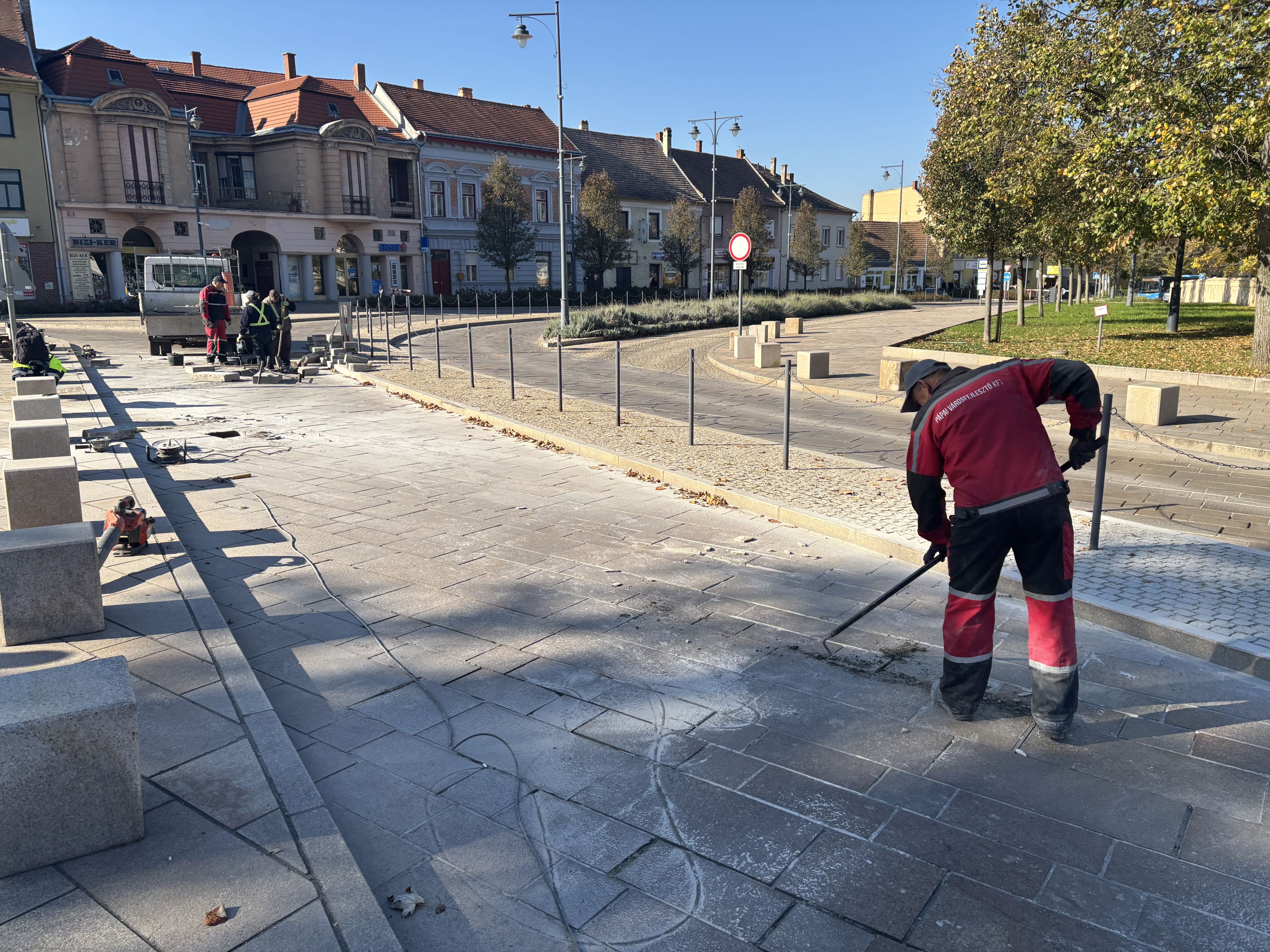 Újra számos kő meglazult a Fő téren, javítják az útburkolatot