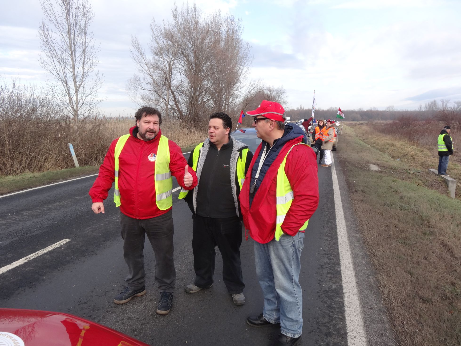 A demonstrációt megelőzően László Zoltánt, a szervező Vasas Szakszervezeti Szövetség alelnökét kérdeztük arról, hogy miért ezt a formáját választották a tiltakozásnak. - Nem kívánunk büntetni senkit, hanem meg kívánjuk mutatni azt, hogy nem tudunk egyetérteni az olyan törvénykezési formával, amely teljesen figyelmen kívül hagyja azokat, akikről szól az adott törvény, teljesen figyelmen kívül hagyja az érintettek szakmai véleményét és a társadalmi érdeket. Az útlezáráson kívül egyéb formában is tiltakozunk ez ellen - mondta el az alelnök.