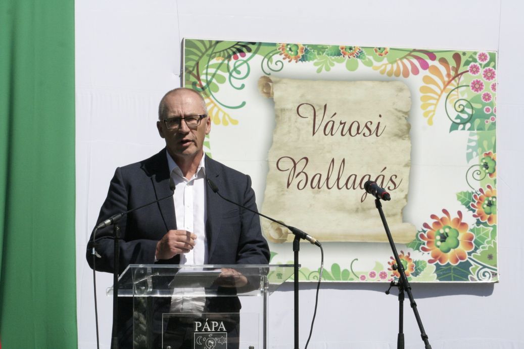 Ünnepi beszédet mondott dr. Áldozó Tamás, a Veszprém Vármegyei Közgyűlés alelnöke, akinek a lánya is a ballagó diákok közt volt. A volt polgármester úgy fogalmazott, hogy egy közel félezer éves hagyomány folytatói a ma ballagók, pápai diákok, mely minősítésnek súlya van. Felidézte, a diákokat is érintő nagy próbatélt, a koronavírus járványt és az azzal járó korlátozásokat, mégis azt mondta, hogy jókor, jó iskolákba jártak, hiszen a nagyobb próbák nagyobb teljesítményt eredményeznek.