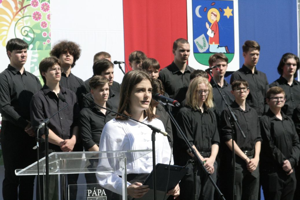A diákok nevében Horváth Viktória, a Pápai Szakképzési Centrum Jókai Mór Közgazdasági Technikum és Kollégium tanulója búcsúzott, köszönetet mondva szüleiknek és pedagógusaiknak. - Azt gondolom, hogy büszkék lehetünk magunkra. Azonban egyedül nem sikerült volna elérnünk mindezt. Köszönettel tartozunk mindazoknak, akik végigkísértek mindet az úton fogalmazott a végzős diák, aki ballagó diáktársait arra buzdította, hogy bátran tekintsenek egy ambíciókkal és lehetőségekkel teli jövőbe.