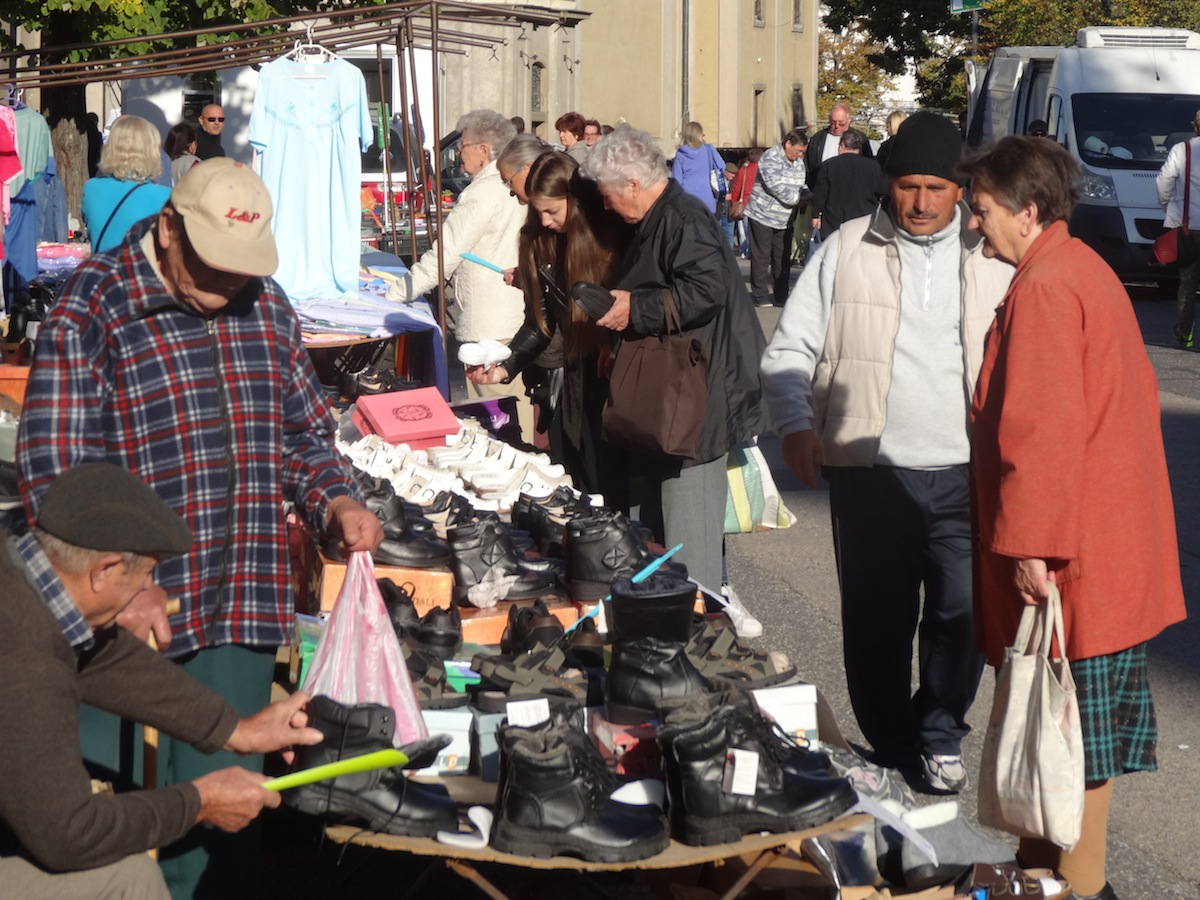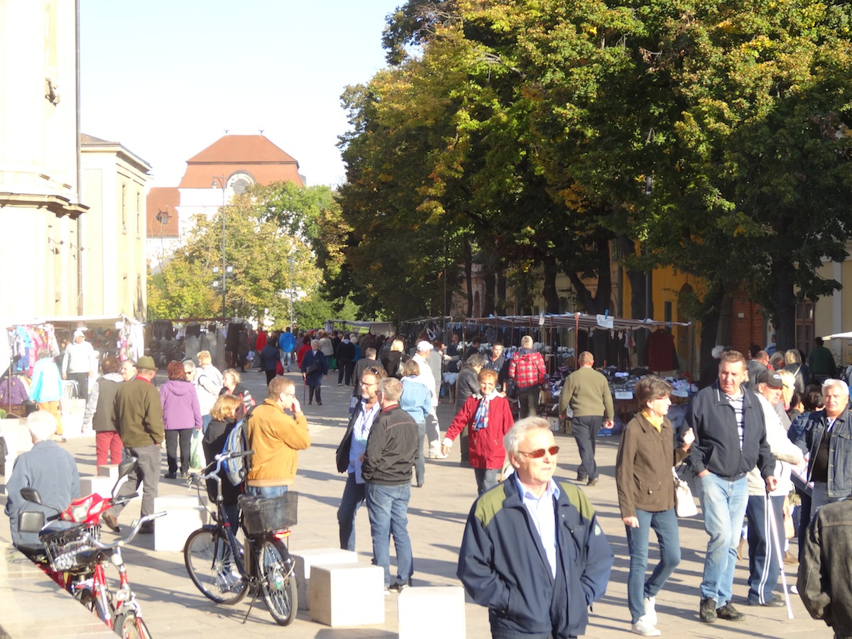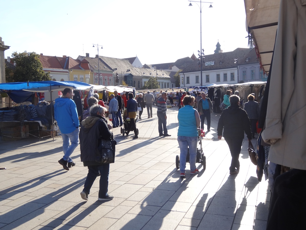 Kedden költöztek a Fő térre a ruhaneműt és iparcikkeket árusítók, követve a gyümölcs- és zöldségpiacot. Akkor a szeles, borongós időben foghíjasak voltak a sorok, most viszont tele van a tér.