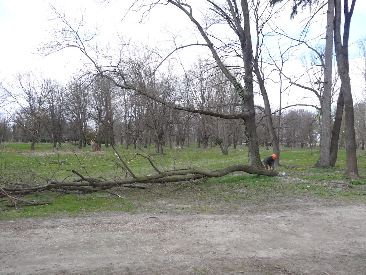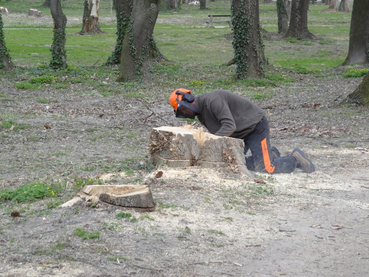 Az utolsó kivágandó fát is kidöntötték a megszépülő parkban. Kezdődhet a tuskók eltávolítása, majd pedig a parképítés.