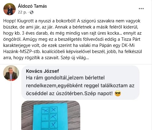 Itt nem volt elég Áldozó Tamásnak, nem sokkal ezelőtt újra posztolt. Szerinte Kovács József bérlete már régi. Hogy ezt honnan tudja, azt már végképp nem tudjuk.