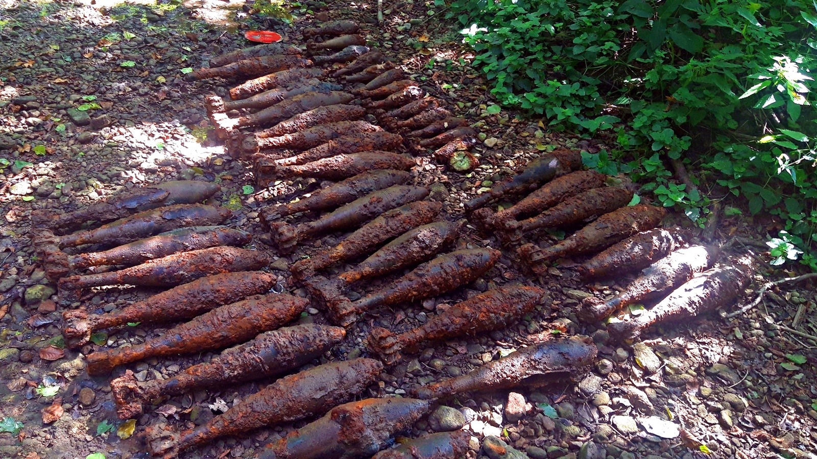 Az évtizedek során már elrozsdásodott, de még mindig veszélyes eszközök az alacsony vízállás miatt váltak láthatóvá és egyben könnyen megközelíthetővé