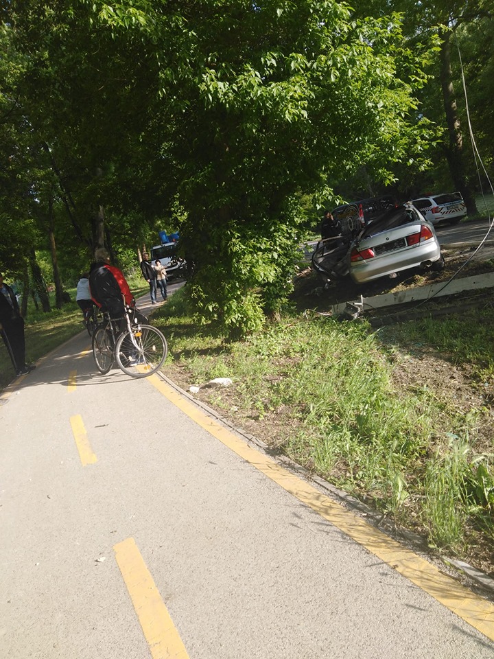 Úgy tudjuk, a kerékpárúton szerencsére éppen akkor nem közlekedett senki, így nem lett nagyobb baj az eset nyomán. Azt, hogy a gépkocsi vezetője, vagy utasa megsérült-e a balesetben, egyelőre nem tudjuk.