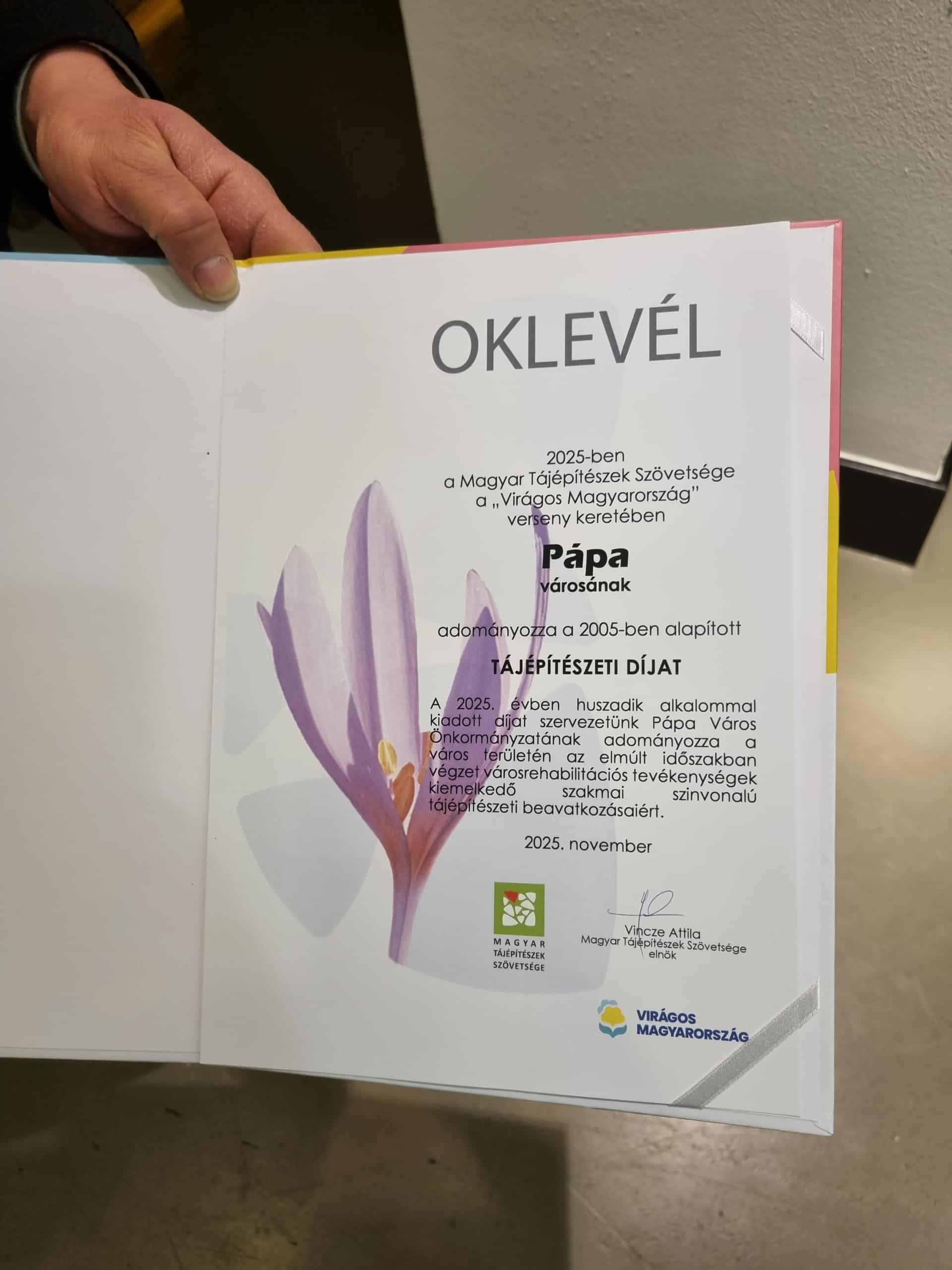 A Virágos Magyarország versenyen Pápa városa Tájépítészeti díjjal gazdagodott 2025-ben.