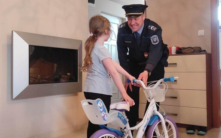 A kerékpárt a rendőrök visszaadták a jogos tulajdonosának és a kislányt láthatósági mellénnyel és kerékpáros védőfelszereléssel is megajándékozták.🙌