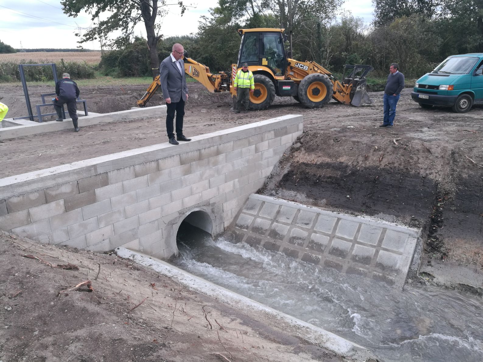 A mai napon annak a zsilipnek a megnyitására került sor – Áldozó Tamás polgármester és Vörös László, a kivitelezést végző cég vezérigazgatója végezték a műveletet – amely a Bakonyérbe vezető övárok irányában zárta el a víz útját. A megnyitás követően mindegy fél órával érte el Pápa határát a víz és néhány órán belül jut el a Malomkert lakóparkhoz, ahol a Bakonyérbe folyik bele.
