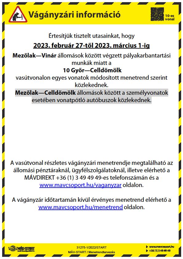 Február 27-e és március 1-je között pedig pótlobuszok viszik az utasokat Mezőlak és Celldömölk között.