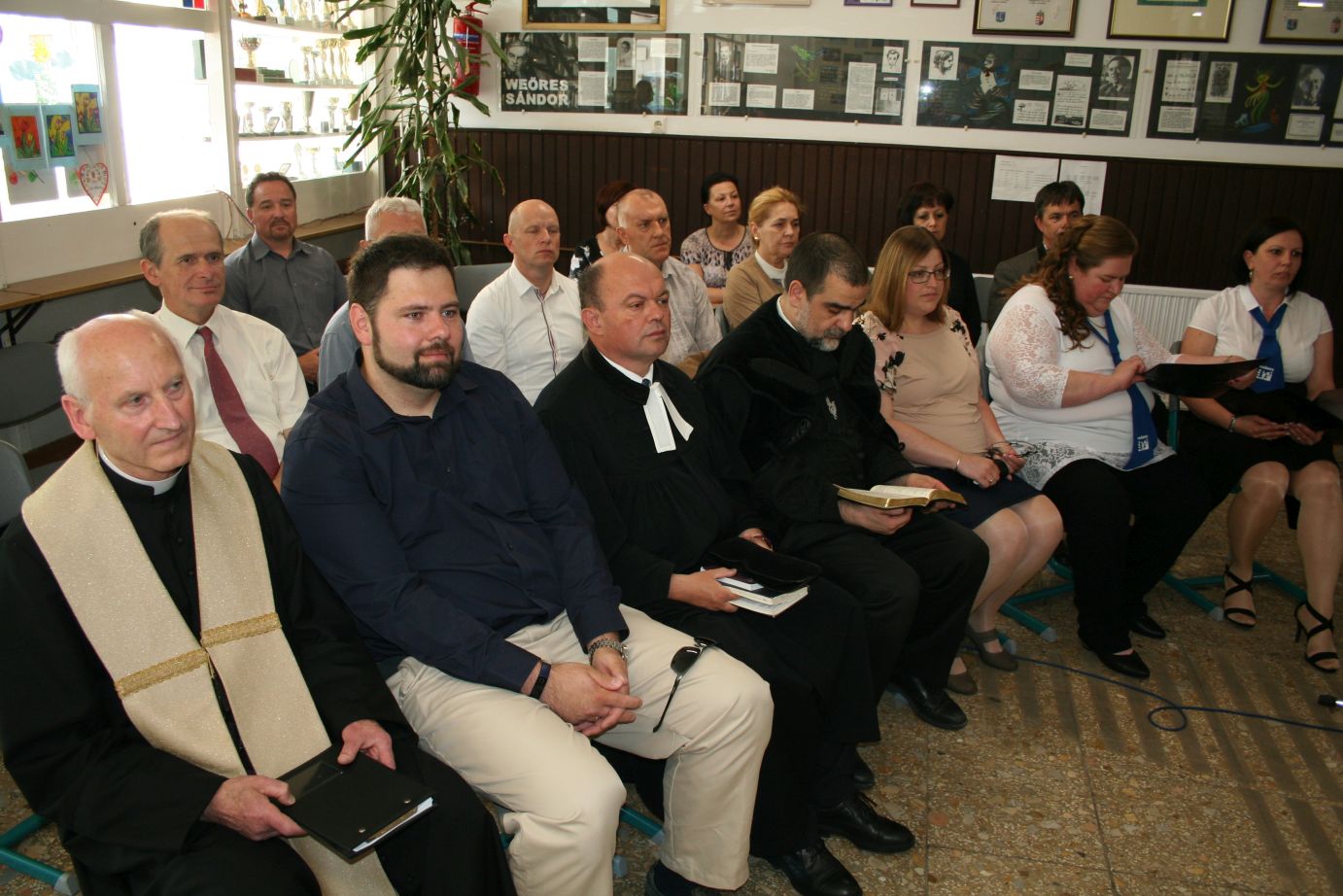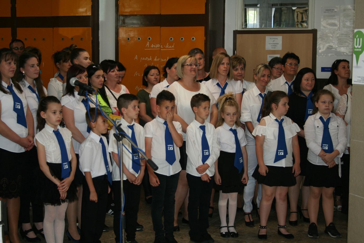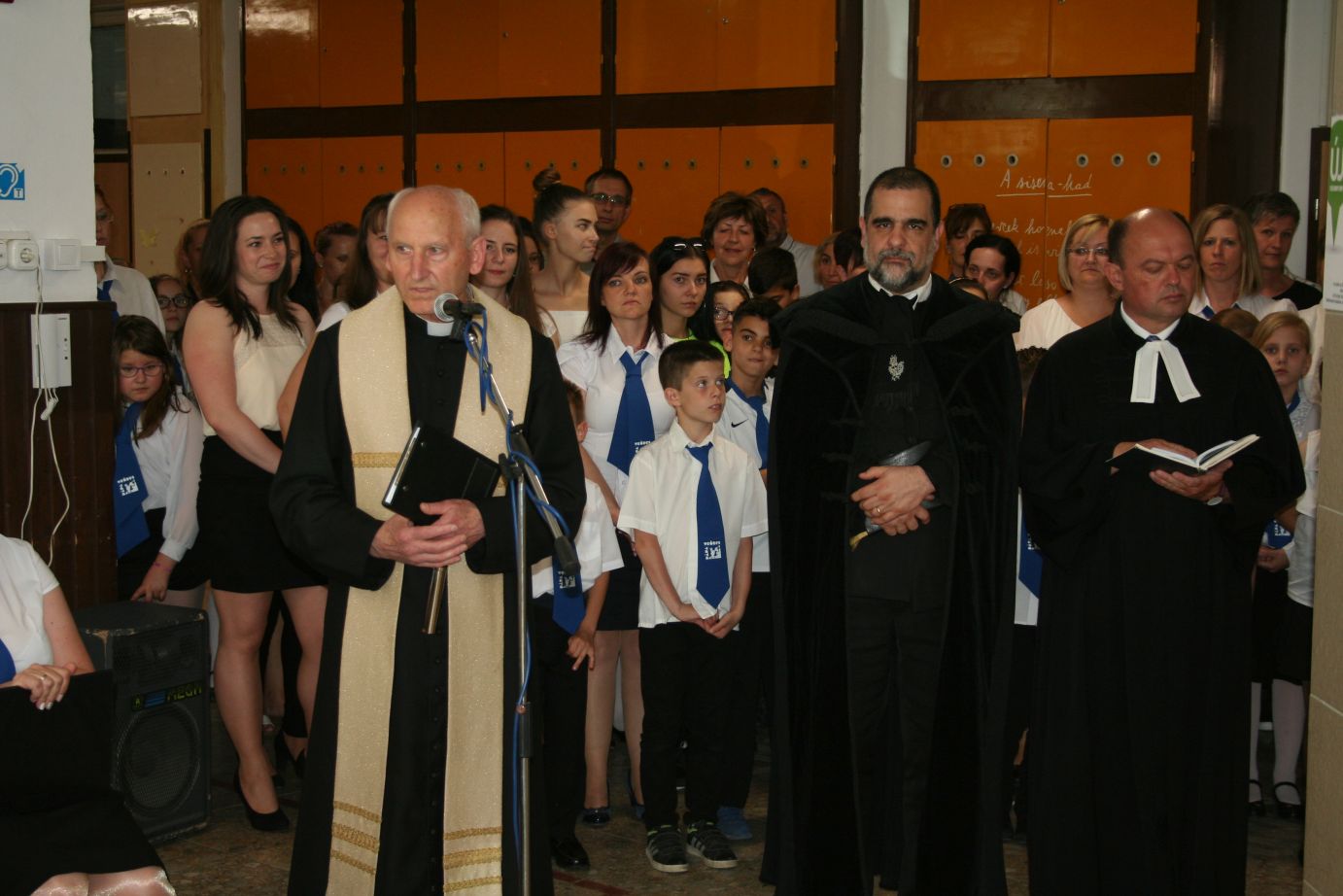 Ezt követően a történelmi egyházak képviselői szentelték fel az iskola jubileumi zászlaját, majd a 4.a osztályosok színes összeállítása szórakoztatta az ünneplőket.