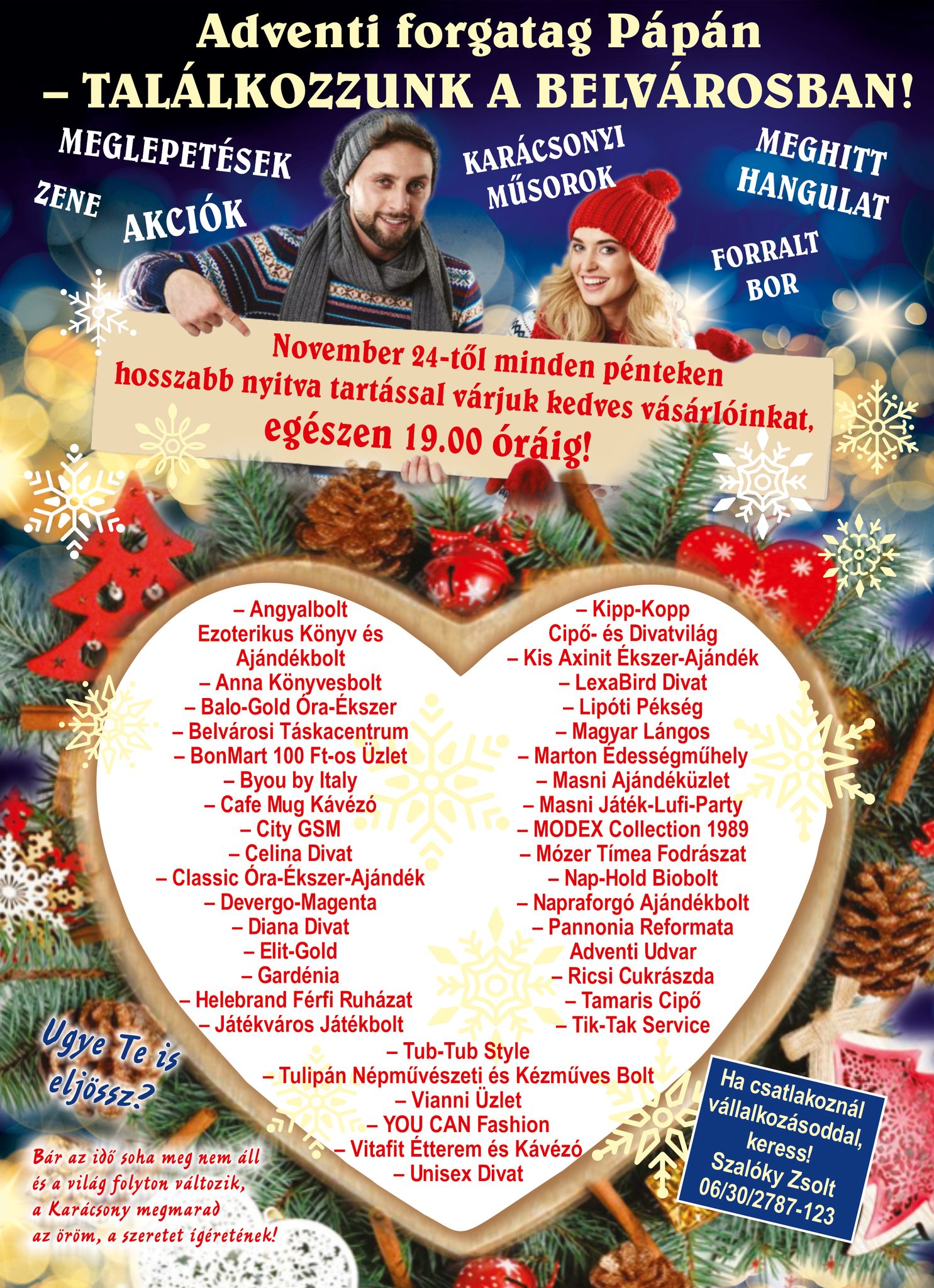 Az adventi időszakban programokkal, péntekenként az üzletek pedig hosszabb nyitva tartással várják az embereket a pápai belvárosban.