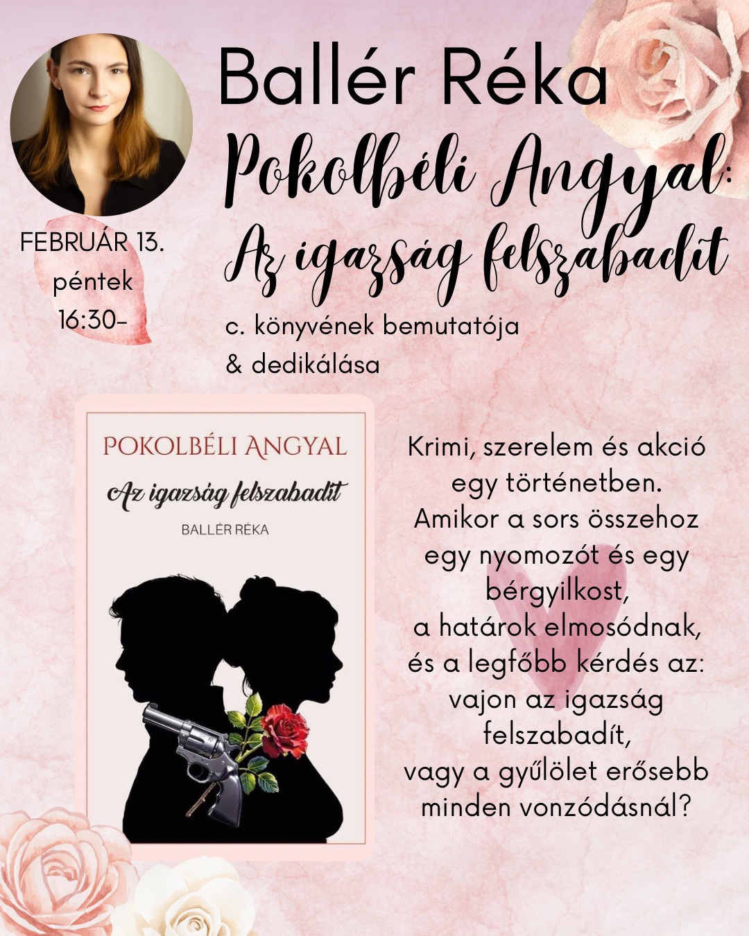 Ballér Réka: Pokolbéli Angyal: Az igazság felszabadít c. regényének bemutatója és dedikálása