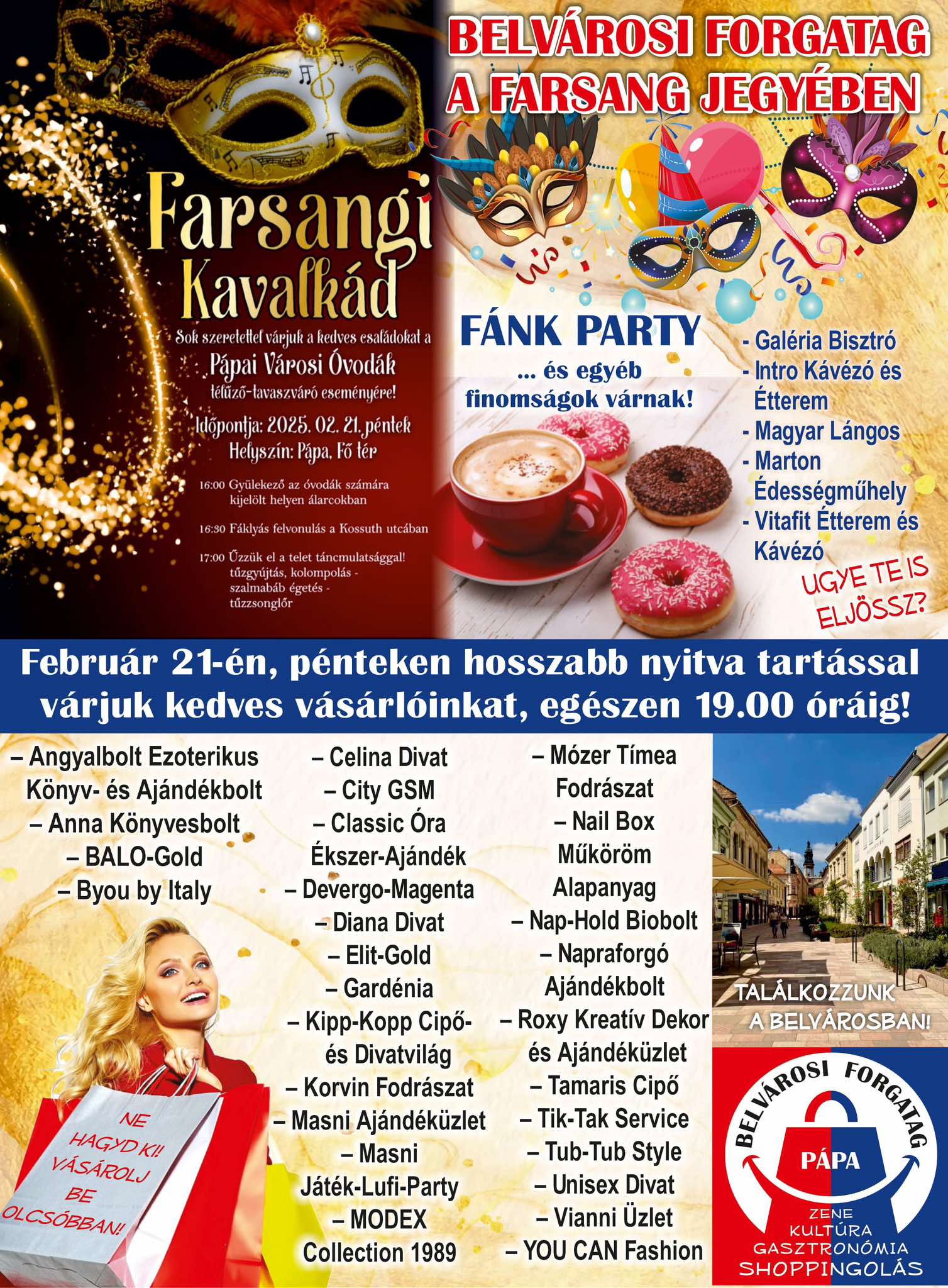 Februárban a farsang jegyében tartják a belvárosi forgatag rendezvényét, melynek keretében a belvárosi üzletek 19 óráig tartanak nyitva.