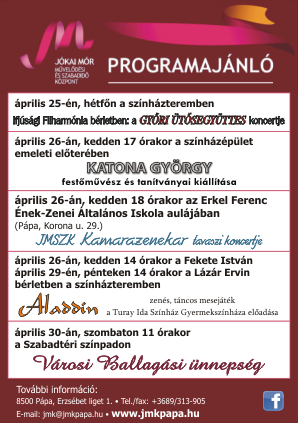 Áprilisi programok Pápán a Jókai Mór Művelődési és Szabadidő Központ szervezésében
