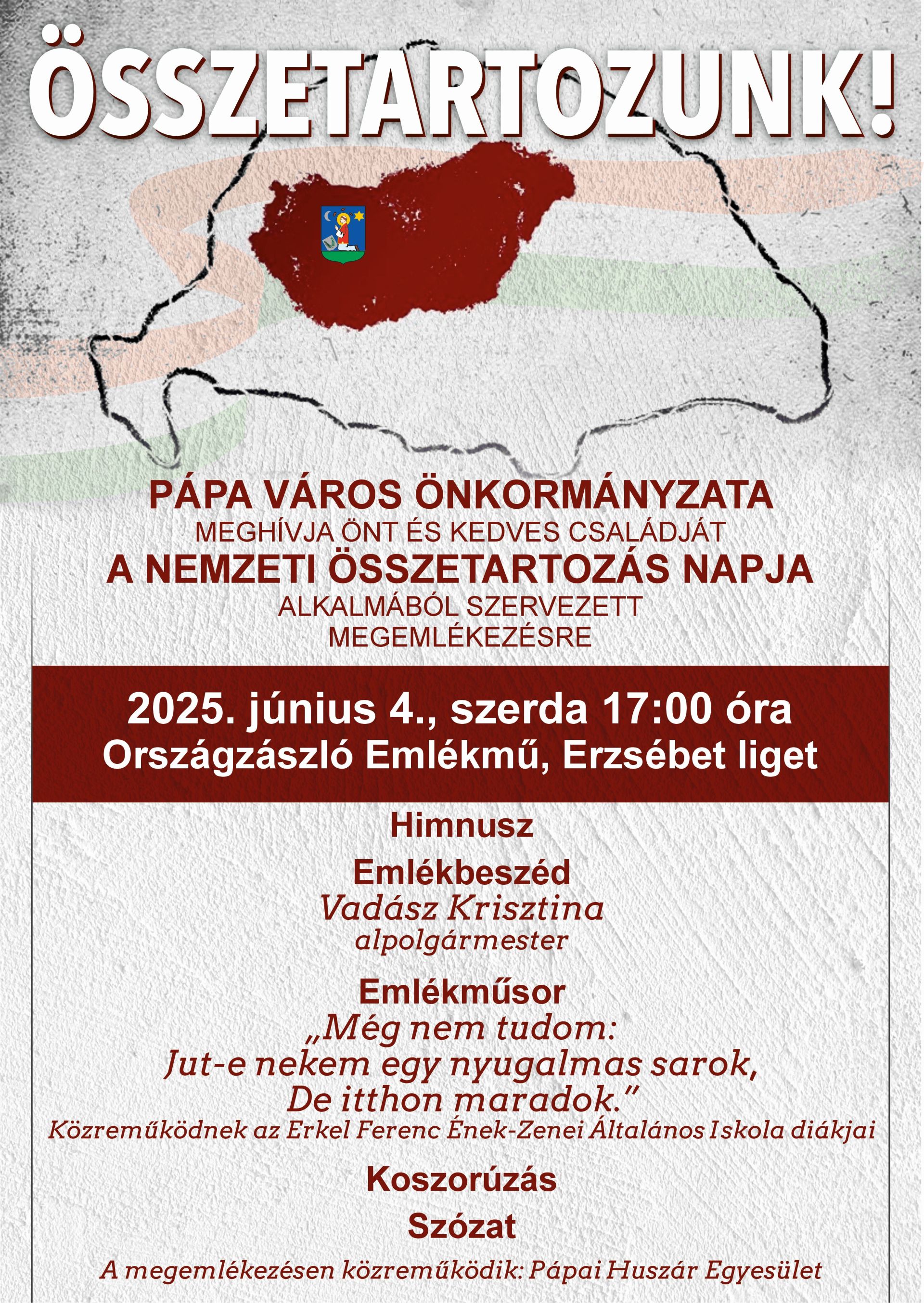 Megemlékezést tartanak Pápán, a Nemzeti Összetartozás Napján