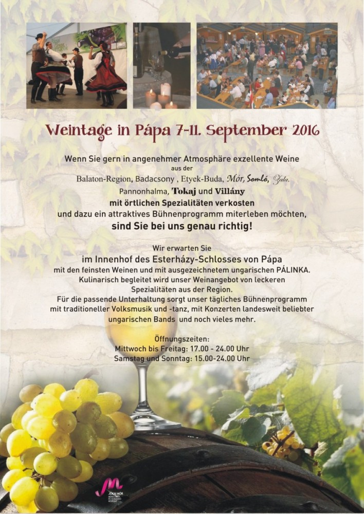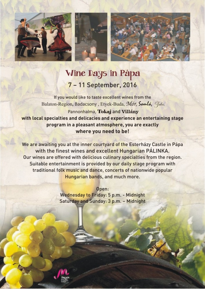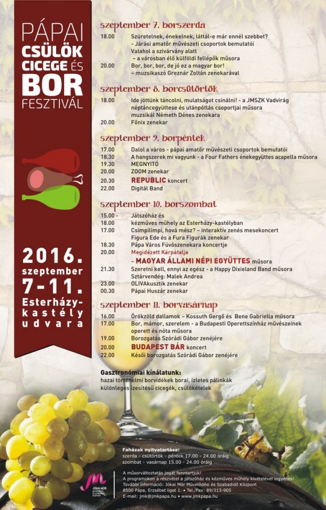 Az idei pápai borfesztiválon fellép a Republic Együttes, a Magyar Állami Népi Együttes, a Budapest Bár és még sokan mások.