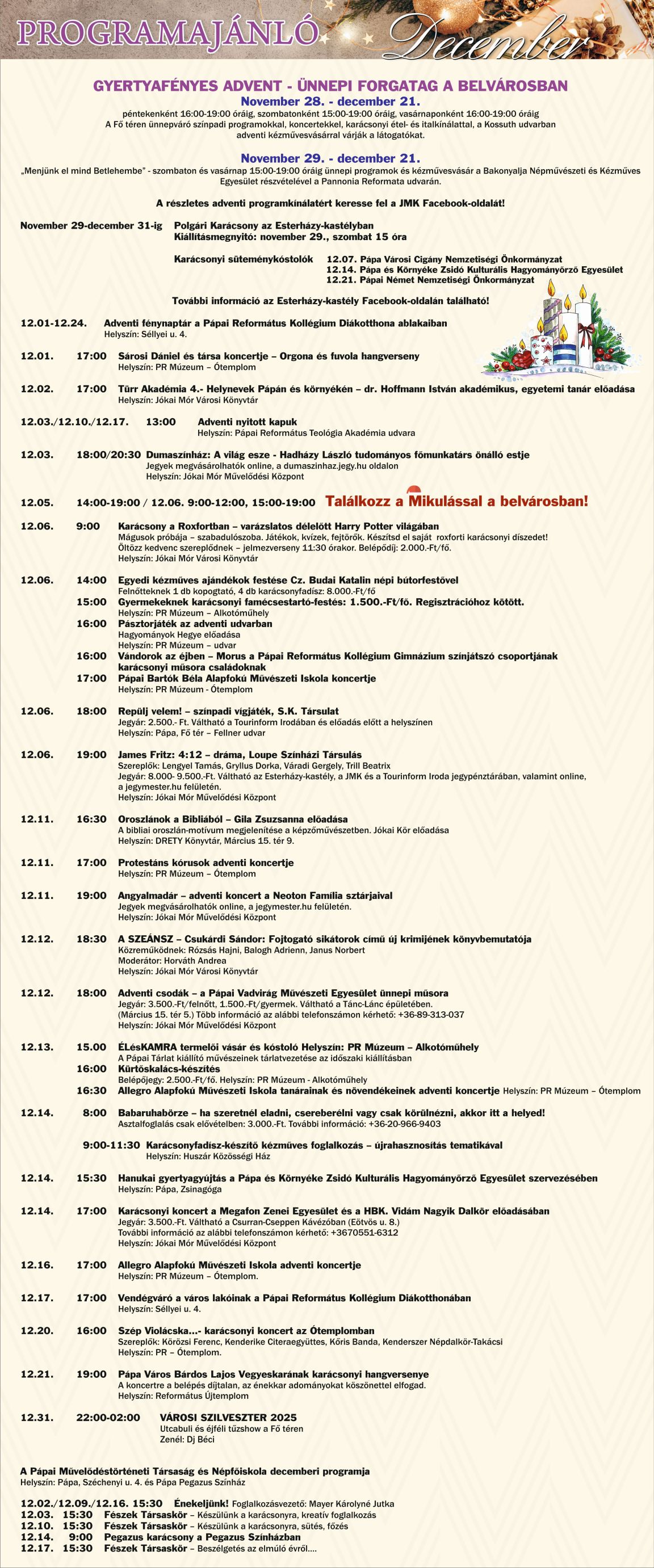 Decemberi Programajánló - Pápa